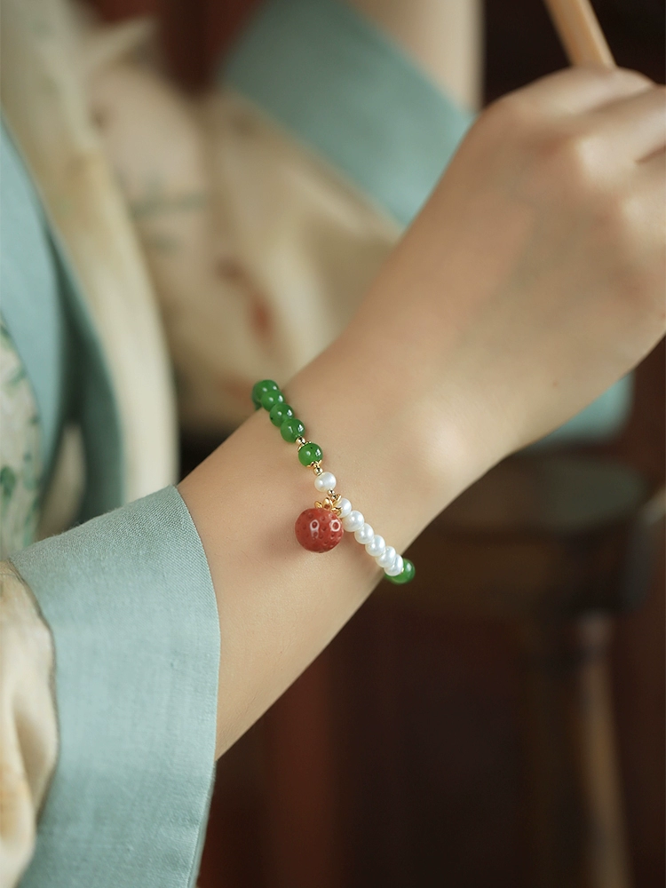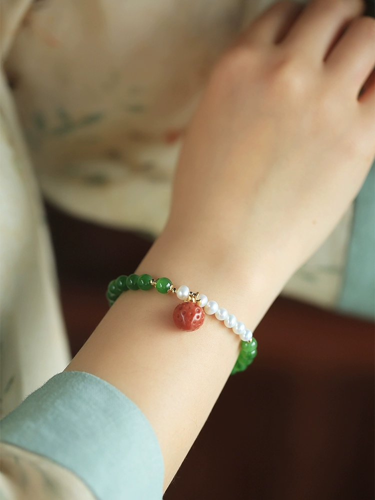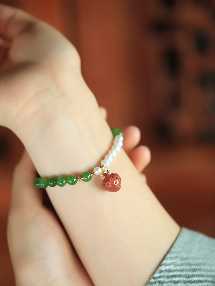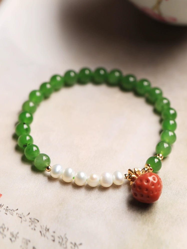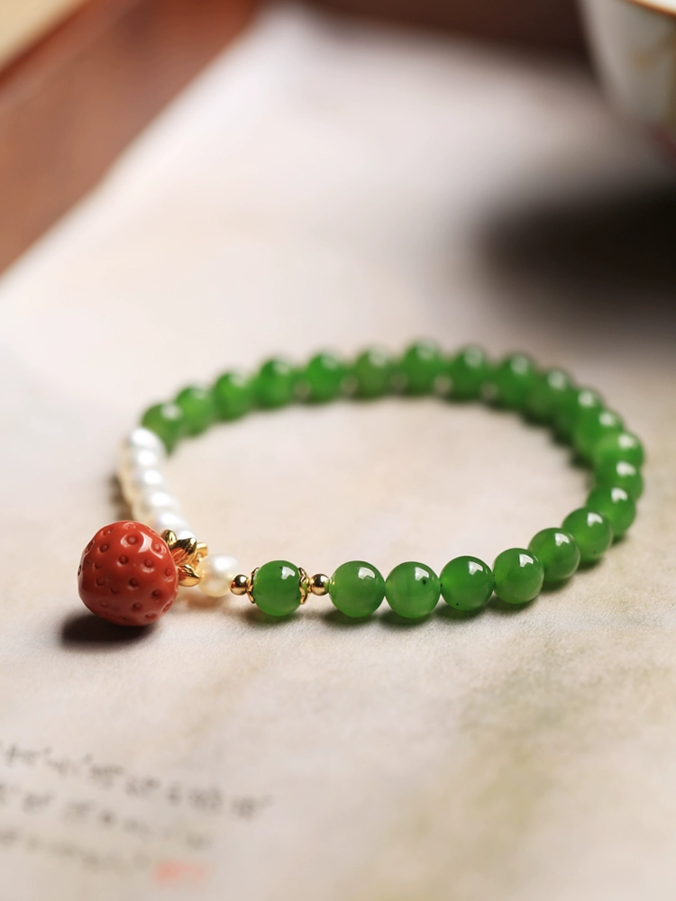 | nameOriginal | Little Silversmith Natural Hetian Jade Bracelet Women's Xia Nan Red Agate Strawberry Jasper Niche Jade Beads Beads Bracelet |