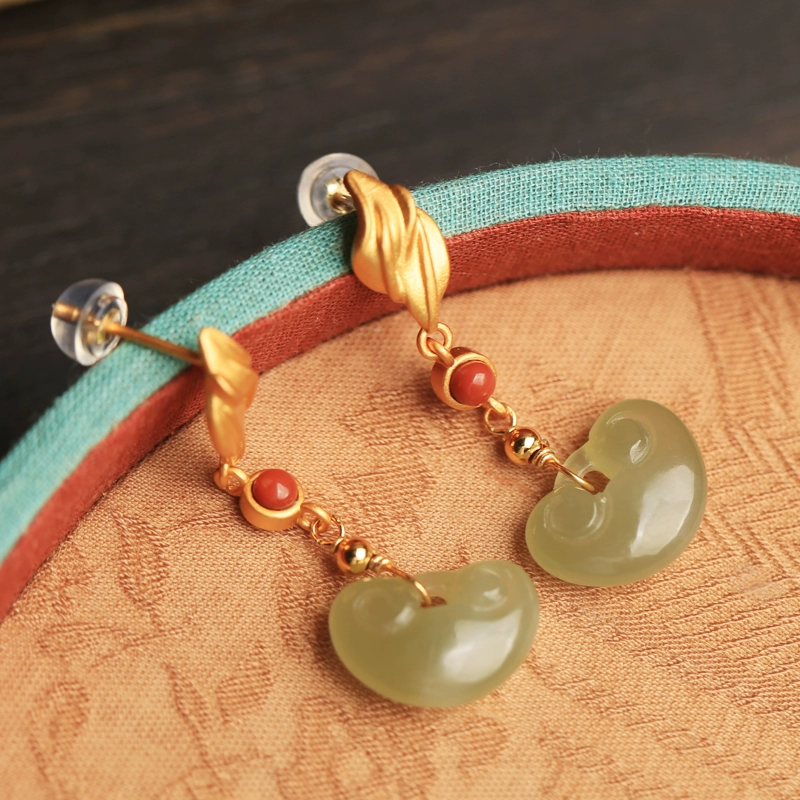 | nameOriginal | Little Silversmith Original Hetian Jade Ruyi Safe Lock Sterling Silver Ancient Gold Retro Earrings Women's Chinese Style Earrings |