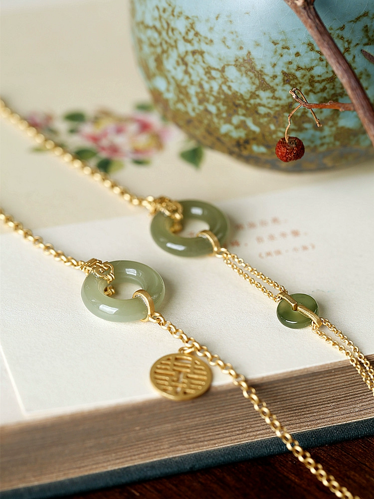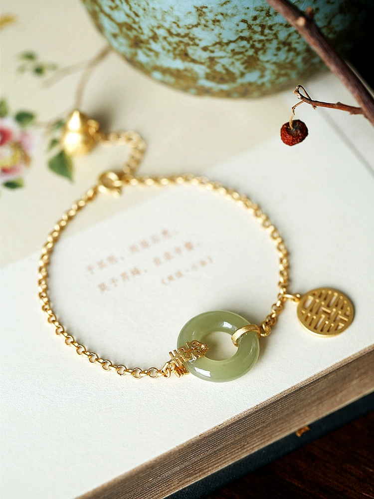 | nameOriginal | Little silversmith sterling silver gold-plated bracelet for women summer Hetian jade safety buckle niche design high-end light luxury retro bracelet |