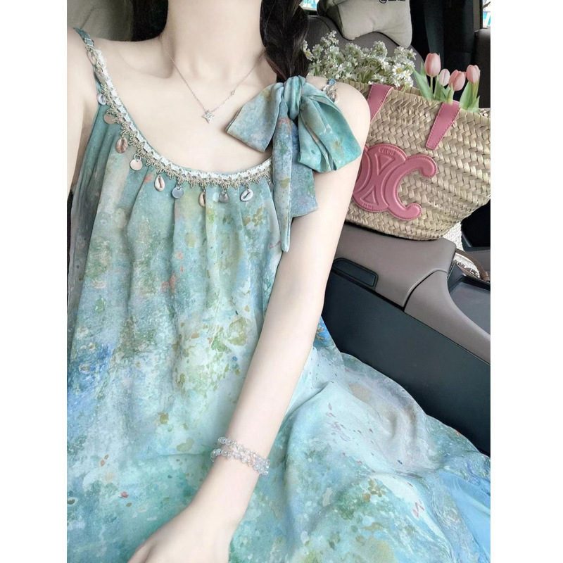 | nameOriginal | Little Tea Break French Green dress Summer New Style off-shoulder Super Fairy Holiday Long Skirt |
