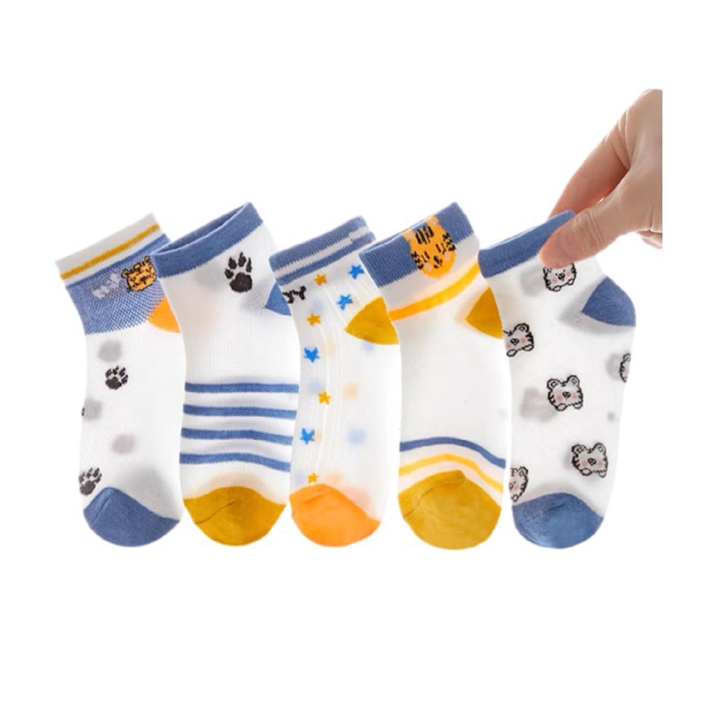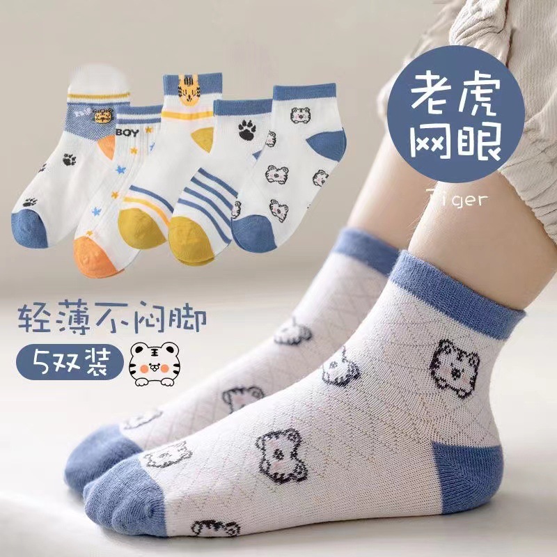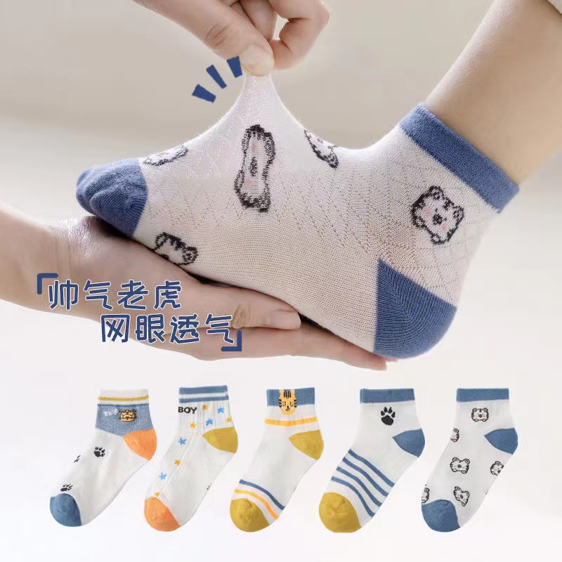 Little Tiger Children's Socks Korean New Men's and Women's Baby Mesh Socks Sweat-absorbent Breathable Baby Socks 5 Pair