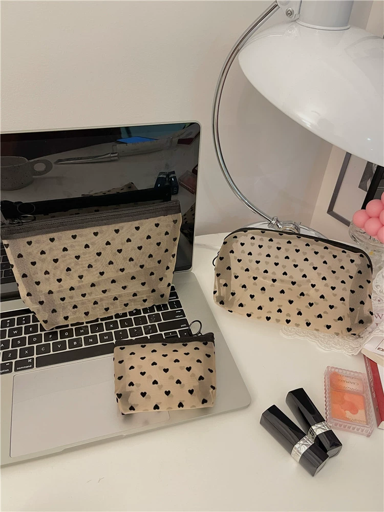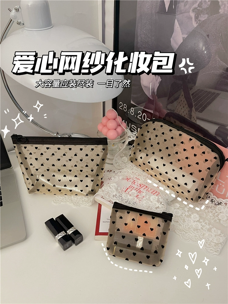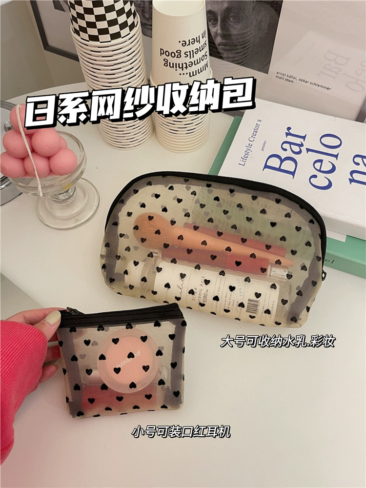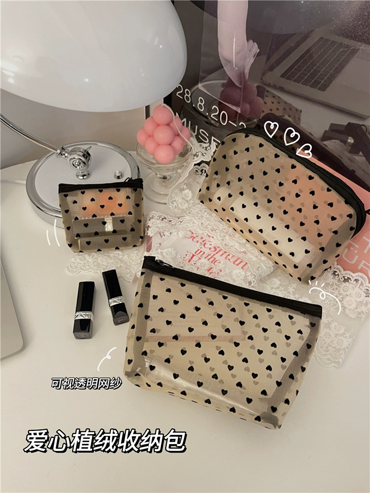 Little White Rabbit Japanese mesh love flocking cosmetic bag ins girl large capacity portable storage toiletry bag