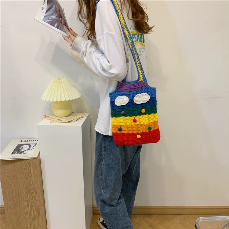 | nameOriginal | Little white rabbit super cute rainbow knitted coin purse small zipper clutch bag student coin key mobile phone bag |