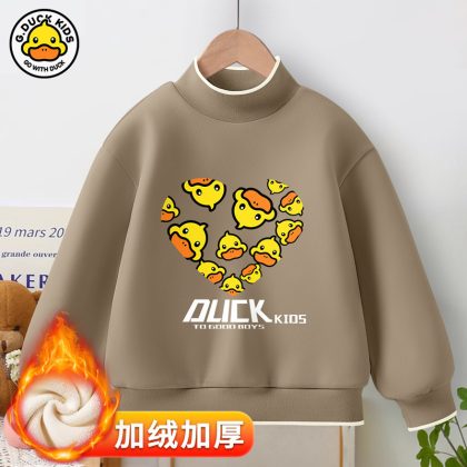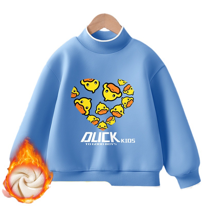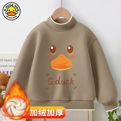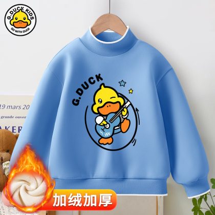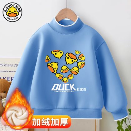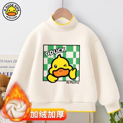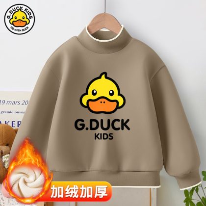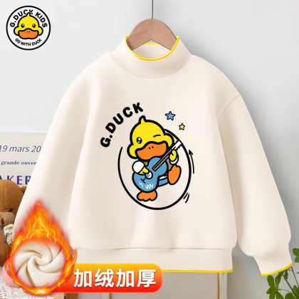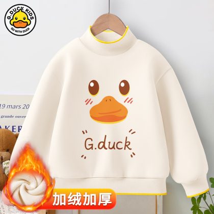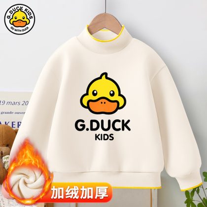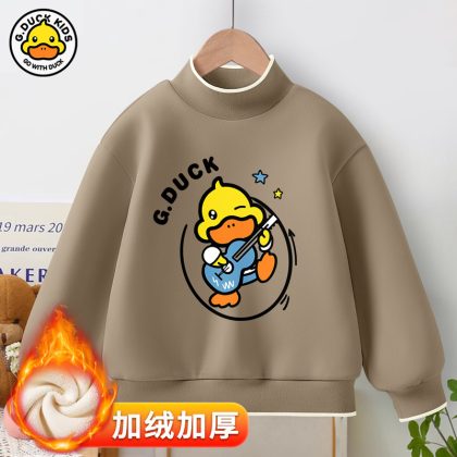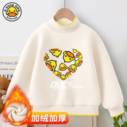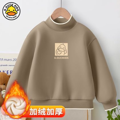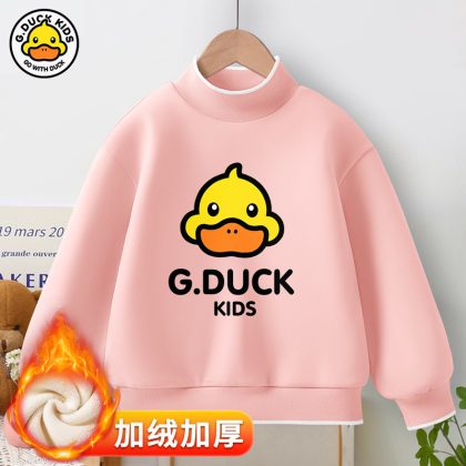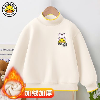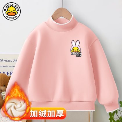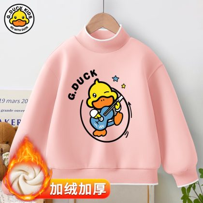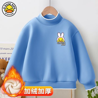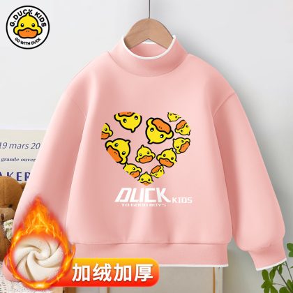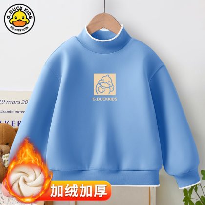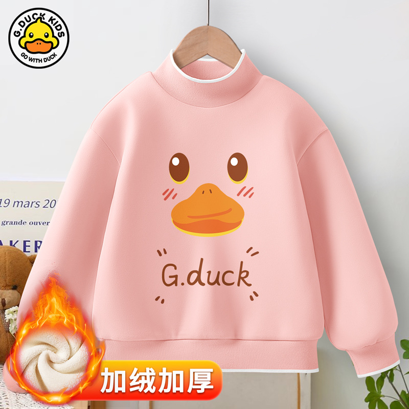 Little Yellow Duck girls’ new warm bottoming shirt 2023 autumn and winter fleece-lined thickened half turtleneck all-match top fashion brand