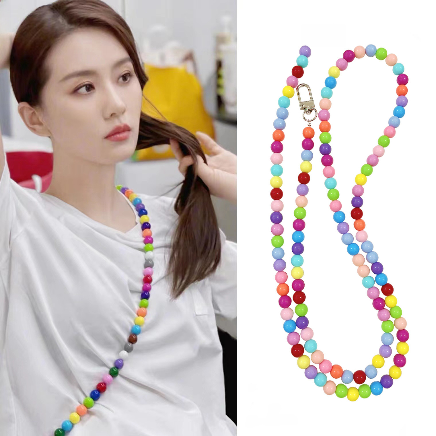 | nameOriginal | Liu Shishi same style beaded rainbow long mobile phone chain women's fashion crossbody portable chain Universal with clip chain |