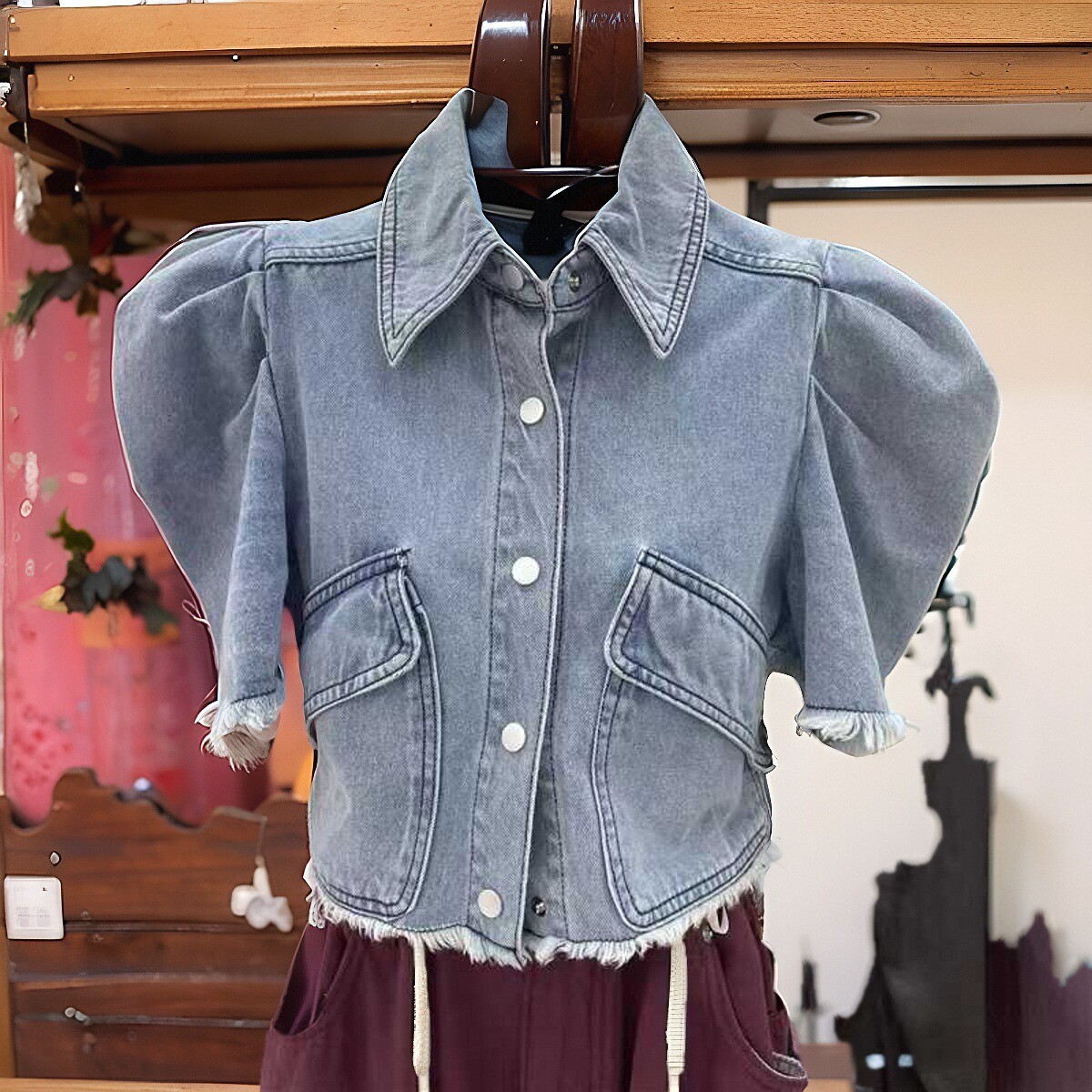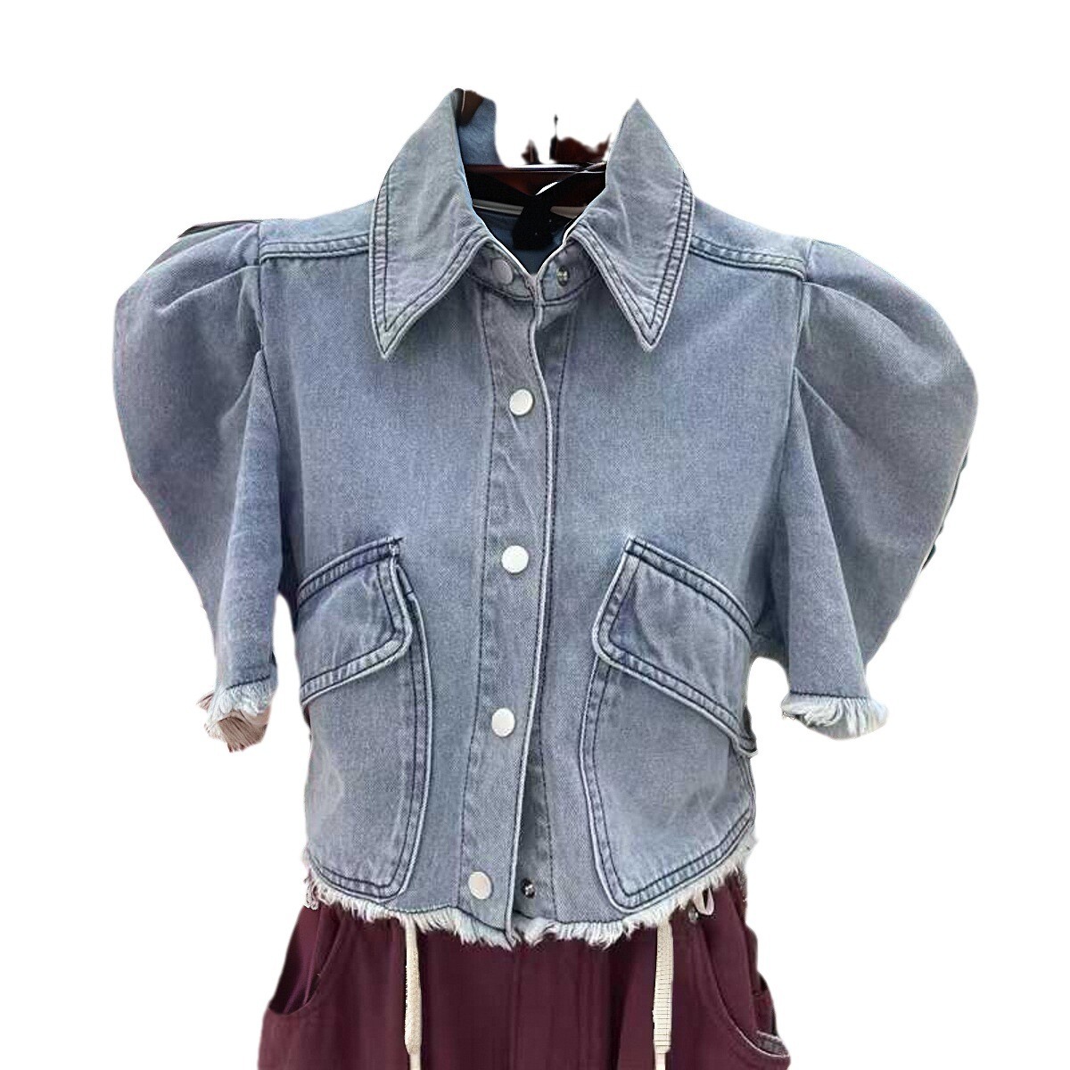 | nameOriginal | Liu Yifei Huang Yimei Same Style Clothes Bubble Short Sleeve Rewash Water Denim Shirt Coat Clothes Women |