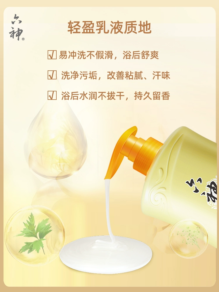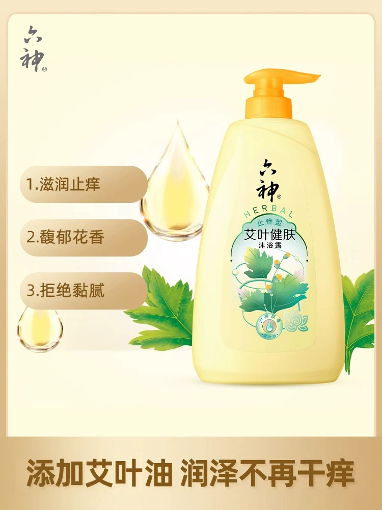 Liushen moxa leaf skin-building shower gel, moisturizing, moisturizing, soothing, anti-itching, refreshing and long-lasting fragrance shower gel 1kg