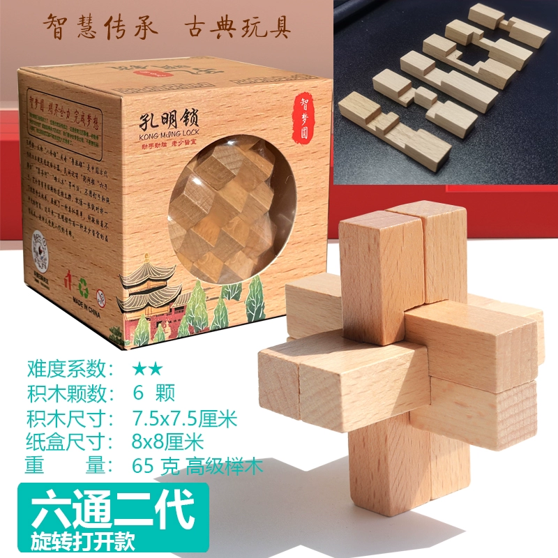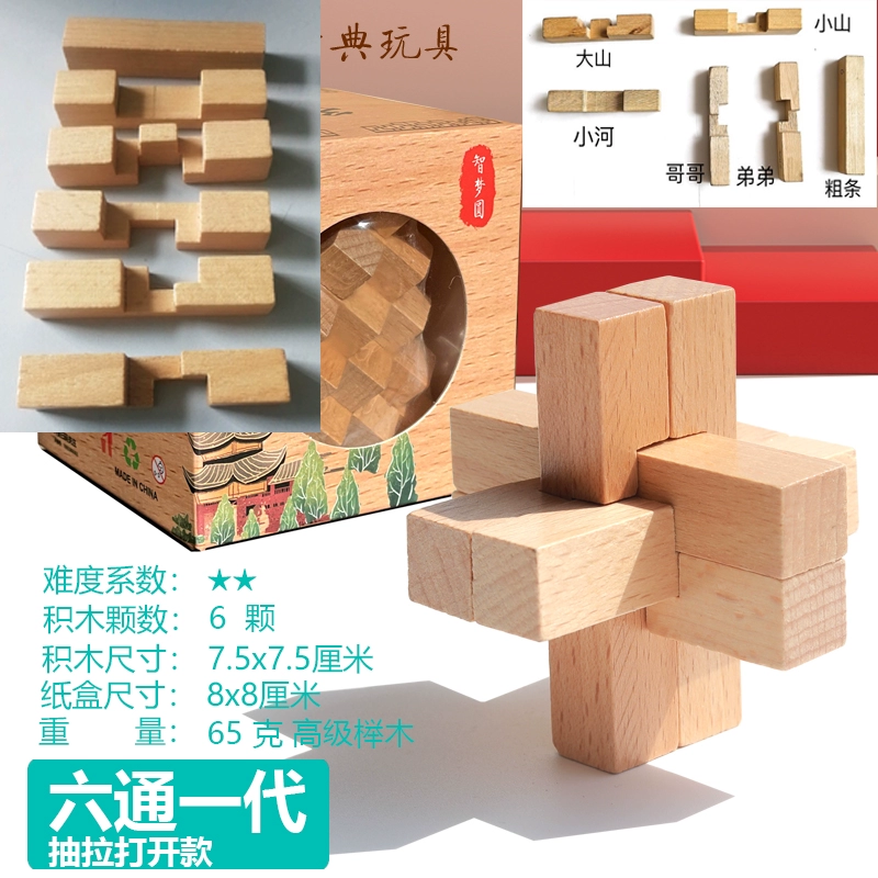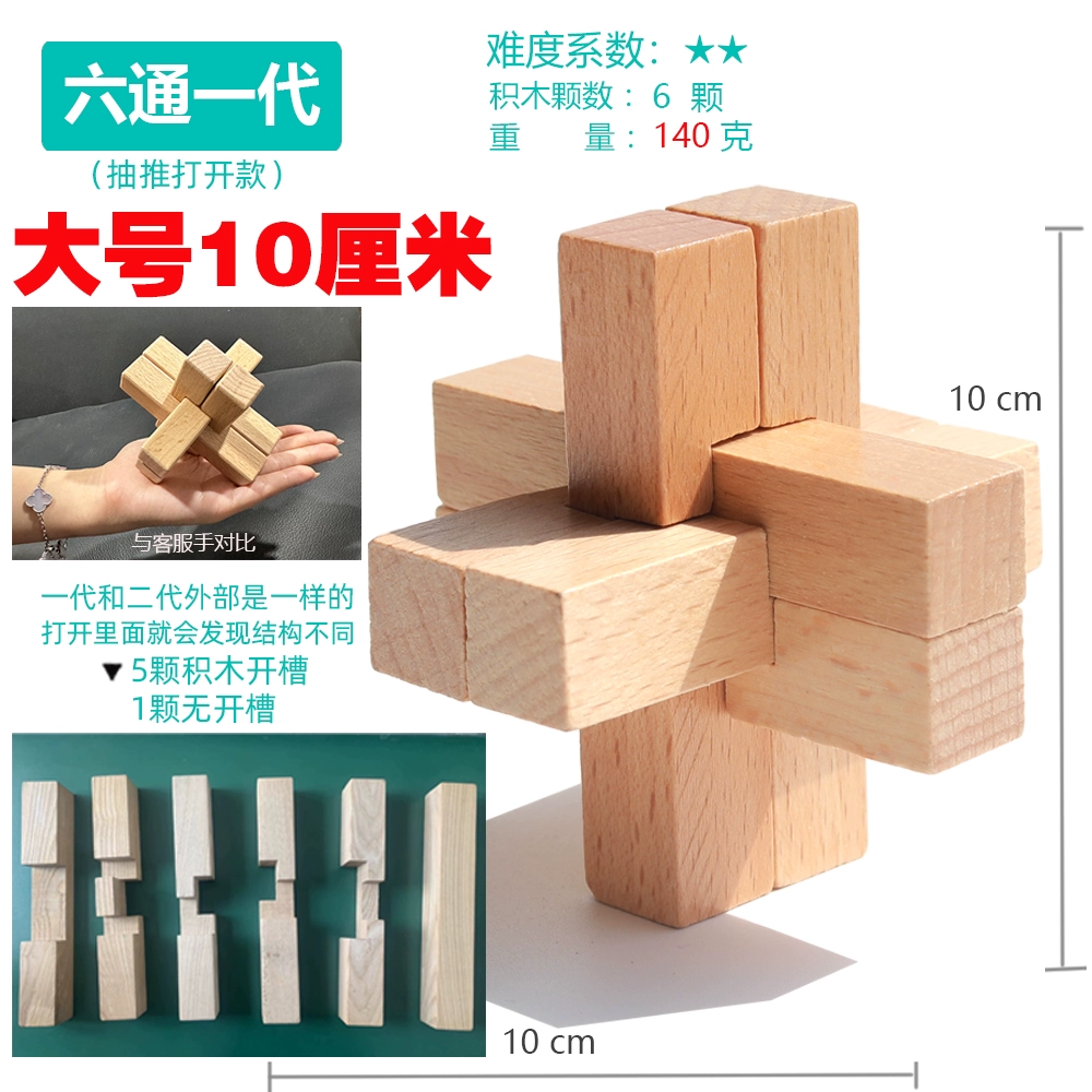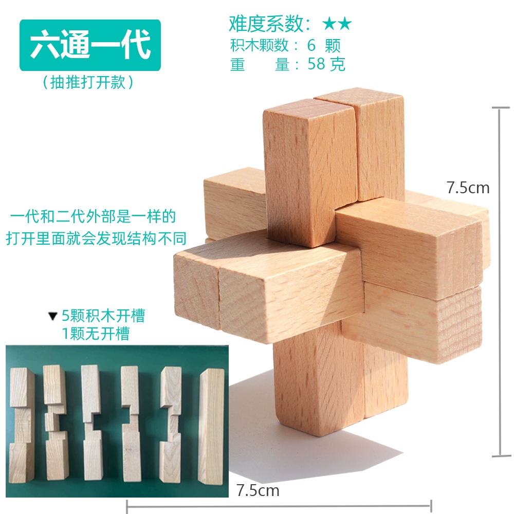 | nameOriginal | Liutong Generation Luban Lock Kong Ming Lock Single Beech Adult Children Brain Education Toy Wooden Six Roots Two |
