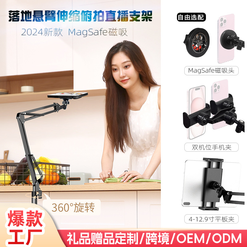 Live broadcast floor-to-floor mobile phone bracket video telescopic adjustable metal cantilever phablet bracket cross-border wholesale