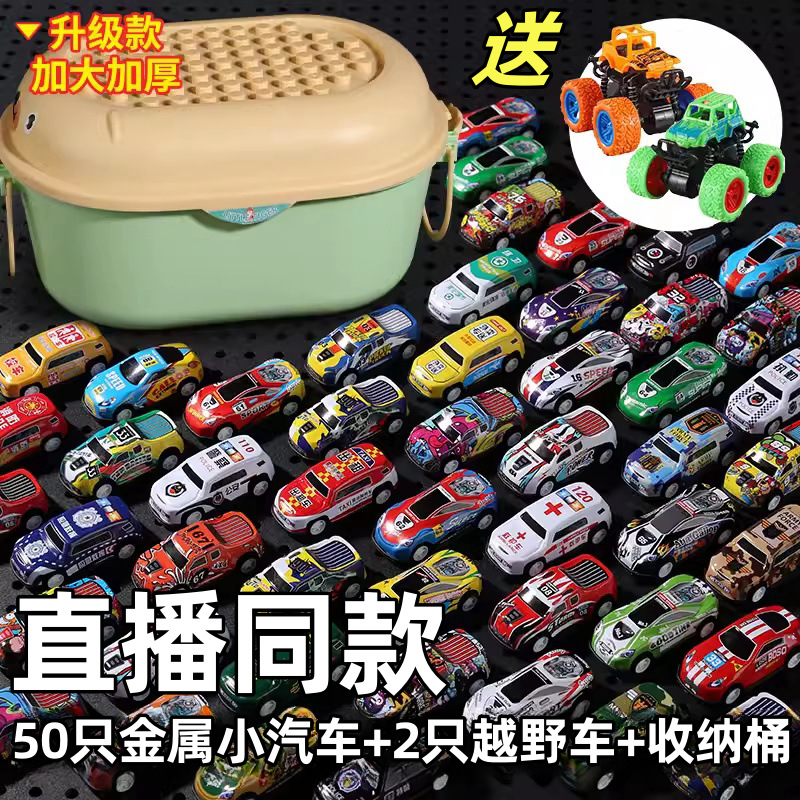 | nameOriginal | Live broadcast of the same model 50 tin cars and 2 off-road vehicles storage box metal car children's toy car |