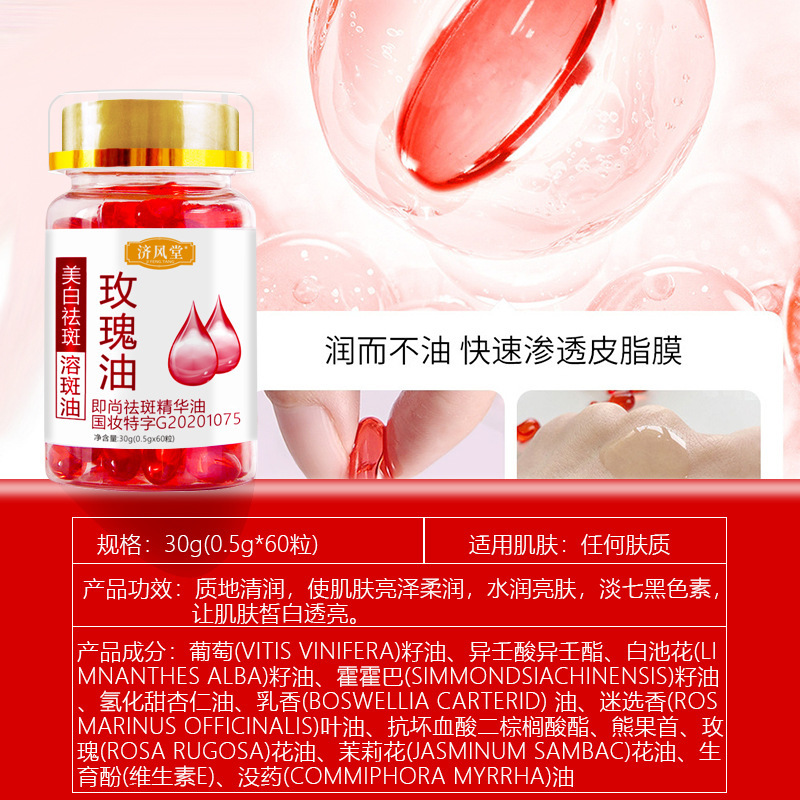 Live broadcast online popular capsule jishang whitening freckle removing essence oil pure oil herbal rose oil freckle pills in stock