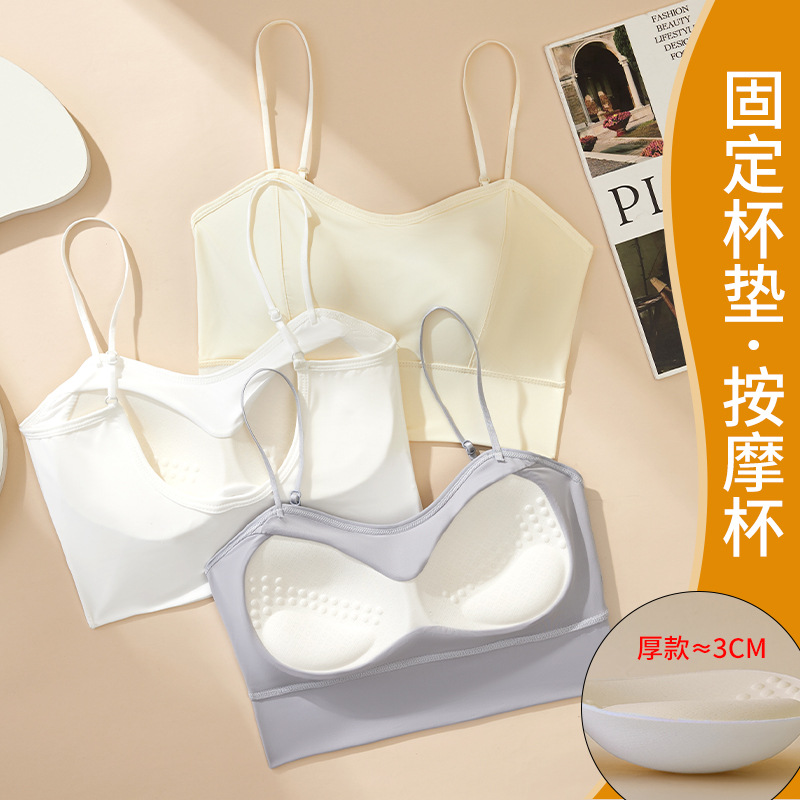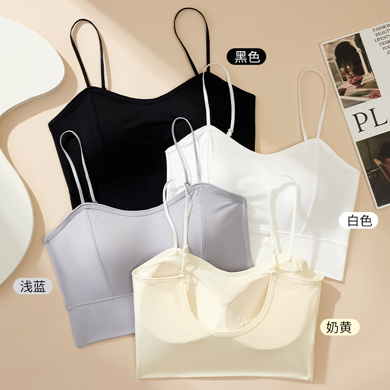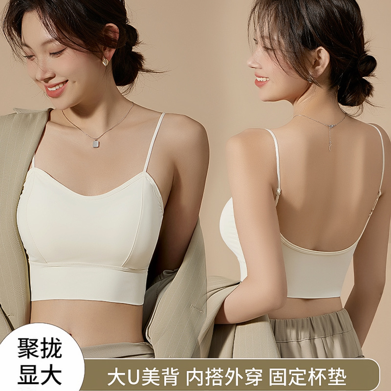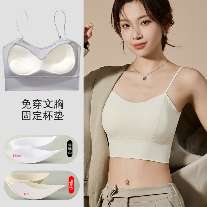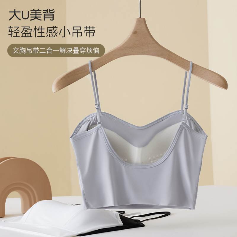 | nameOriginal | Live broadcast popular fixed chest pad Ice Silk seamless camisole thickened 3CM thin shoulder strap large U beauty back underwear spring and summer |