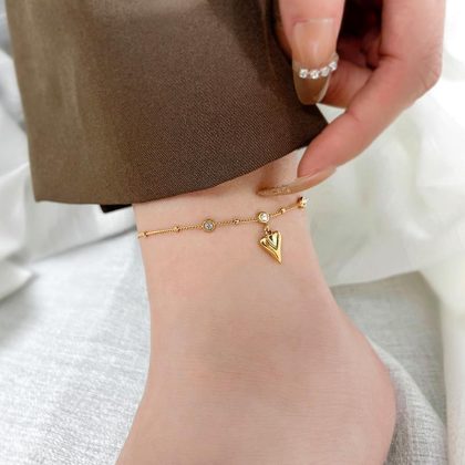 Live broadcast simple niche gourd love titanium steel anklet women’s beach ankle chain girl’s all-match jewelry does not fade