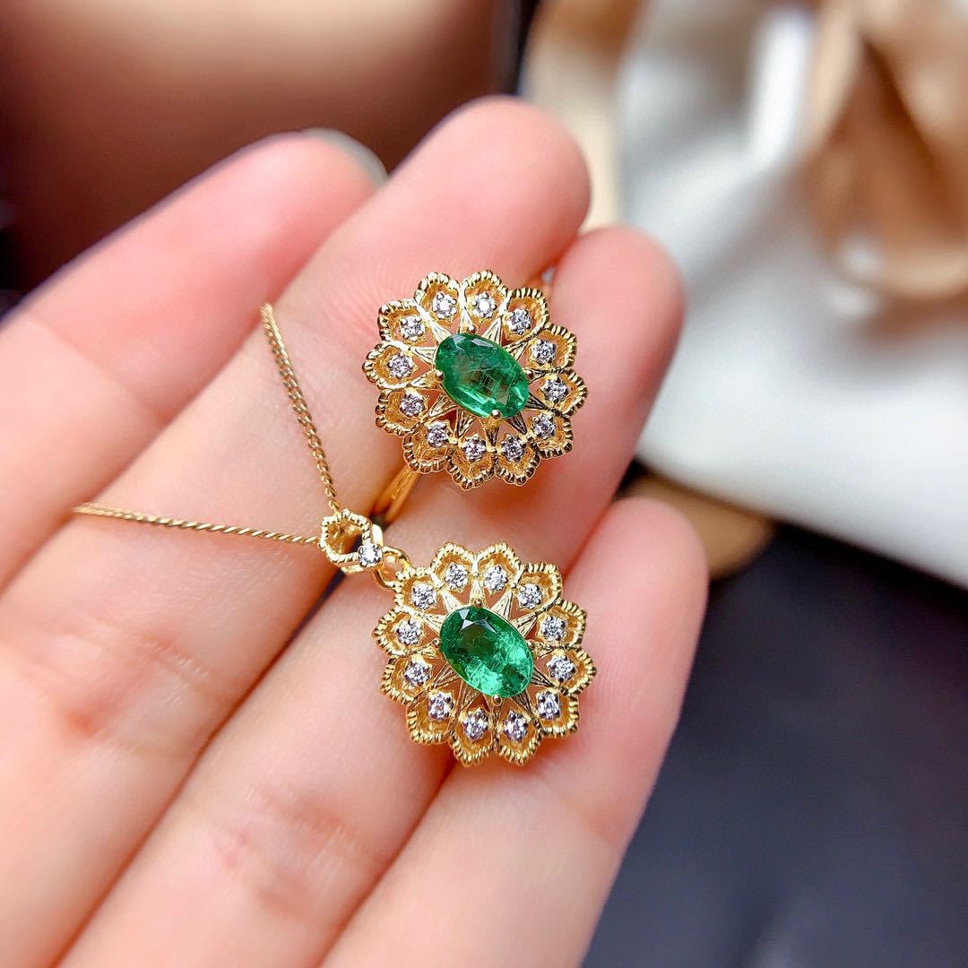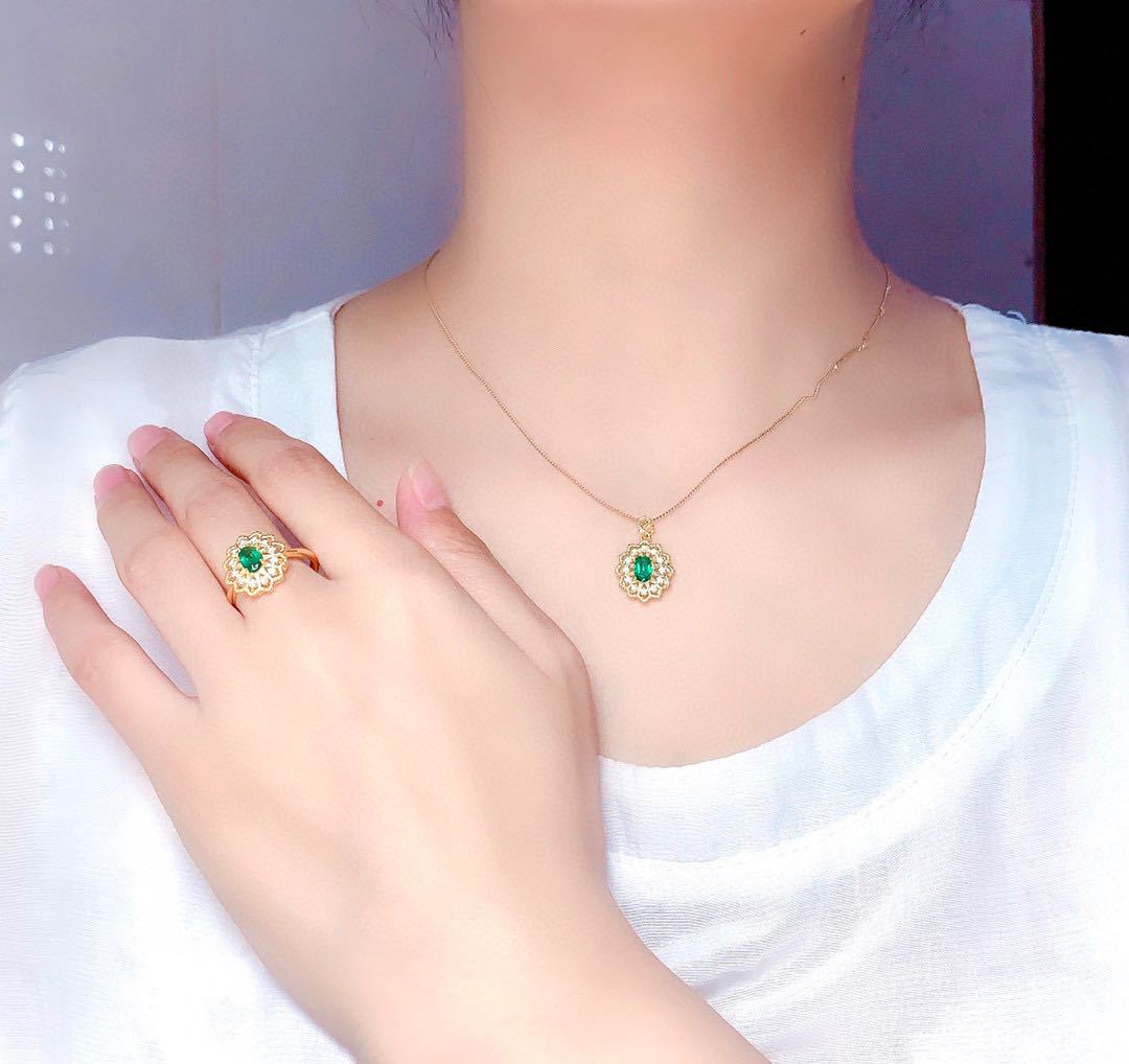 | nameOriginal | Live drainage welfare jewelry wholesale imitation emerald set micro inlay necklace opening ring color treasure earrings women |
