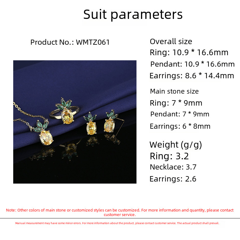 | nameOriginal | Live New Three-piece Suit High-end Luxury Suit Citrine Pineapple Gold-plated Earrings Necklace Bracelet |