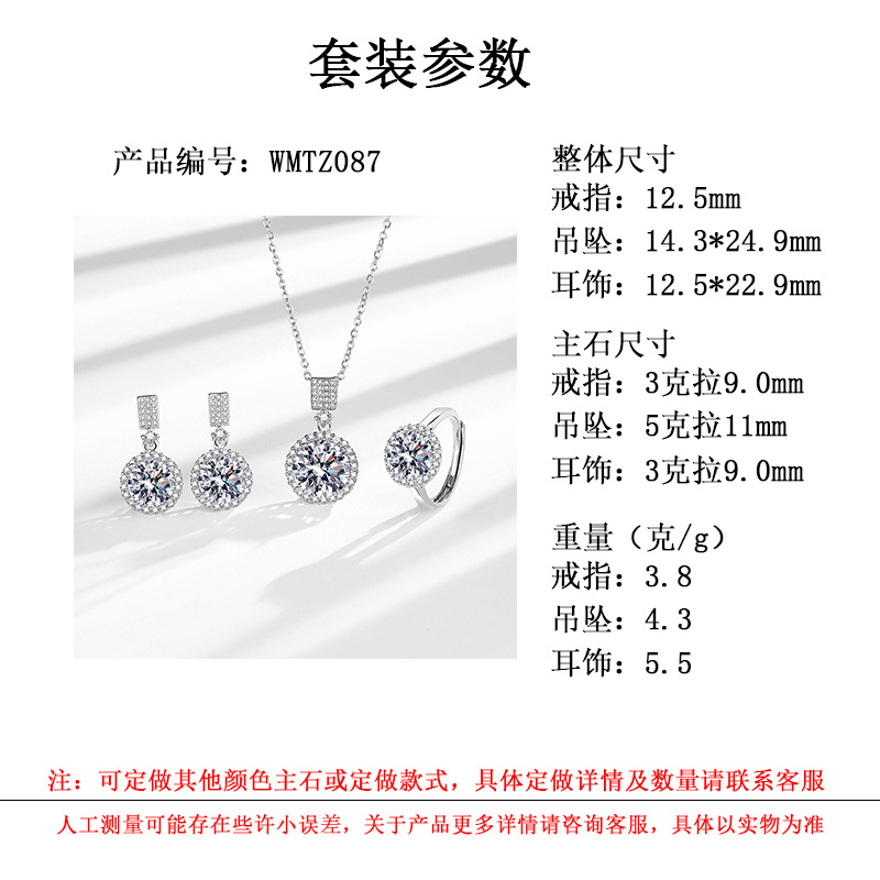 | nameOriginal | Live Selling High-end Heavy Industry Artificial Diamond Luxury Princess Round Earrings Ring Pendant Necklace Women's Three-piece Set |