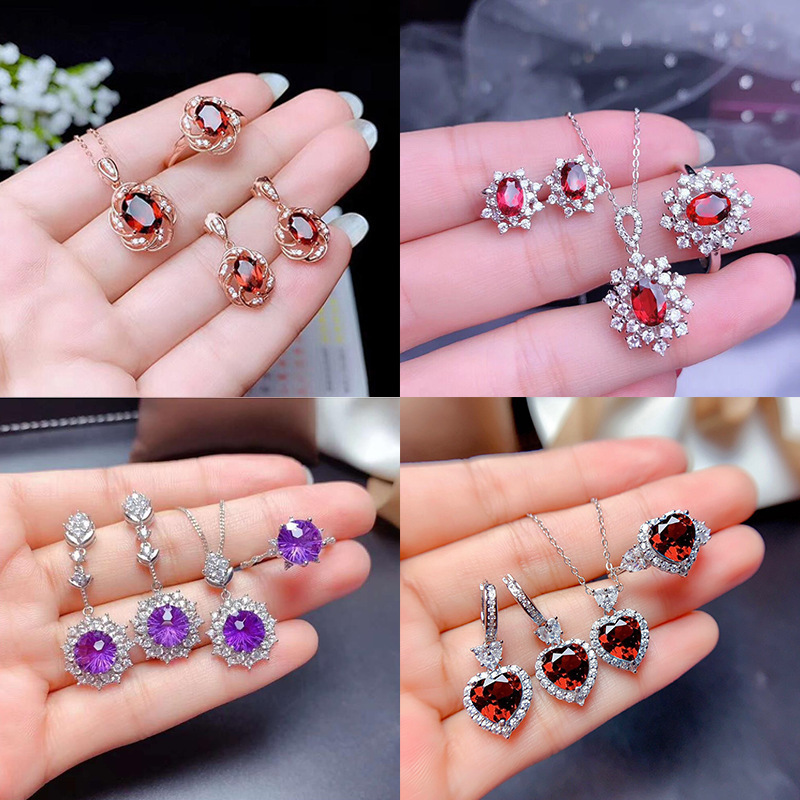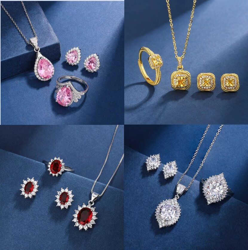 | nameOriginal | Live Supply Three-piece Color Treasure Set Ring Necklace Earrings Combination Personality Luxury Goddess High-end Jewelry |