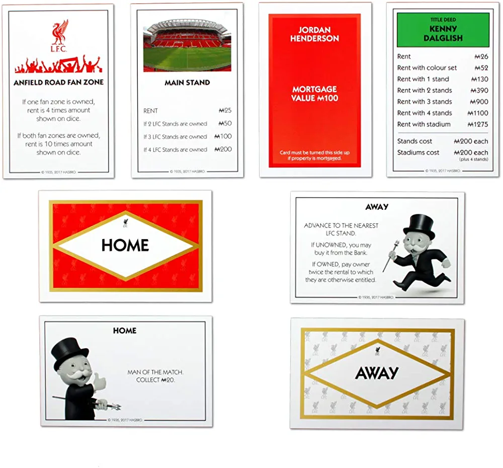 The Monopoly Liverpool Board Game is a must-have for any Liverpool FC fan or board game enthusiast. This classic board game has been given a Liverpool FC twist, featuring iconic landmarks and locations from the city of Liverpool. Players can buy and sell properties such as Anfield Stadium, Goodison Park, and the Liver Building, while collecting rent and building houses and hotels. The game also includes custom tokens such as a Liver Bird, a trophy, and a football, adding to the Liverpool FC theme. This game is perfect for family game night or for Liverpool FC fans to show off their knowledge of the city and their favorite team.