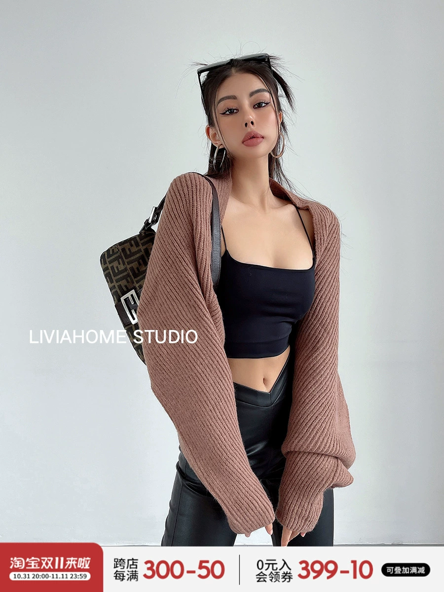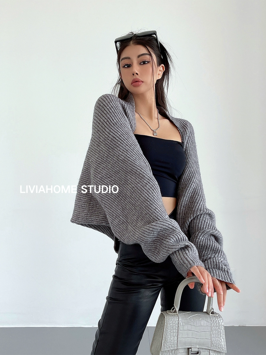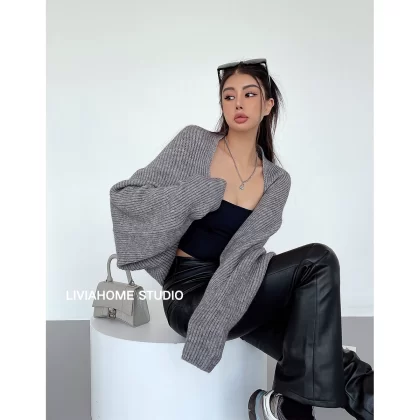 liviahome American style lazy one-piece silhouette with knitted sweater blouse coat long-sleeved women’s autumn and winter