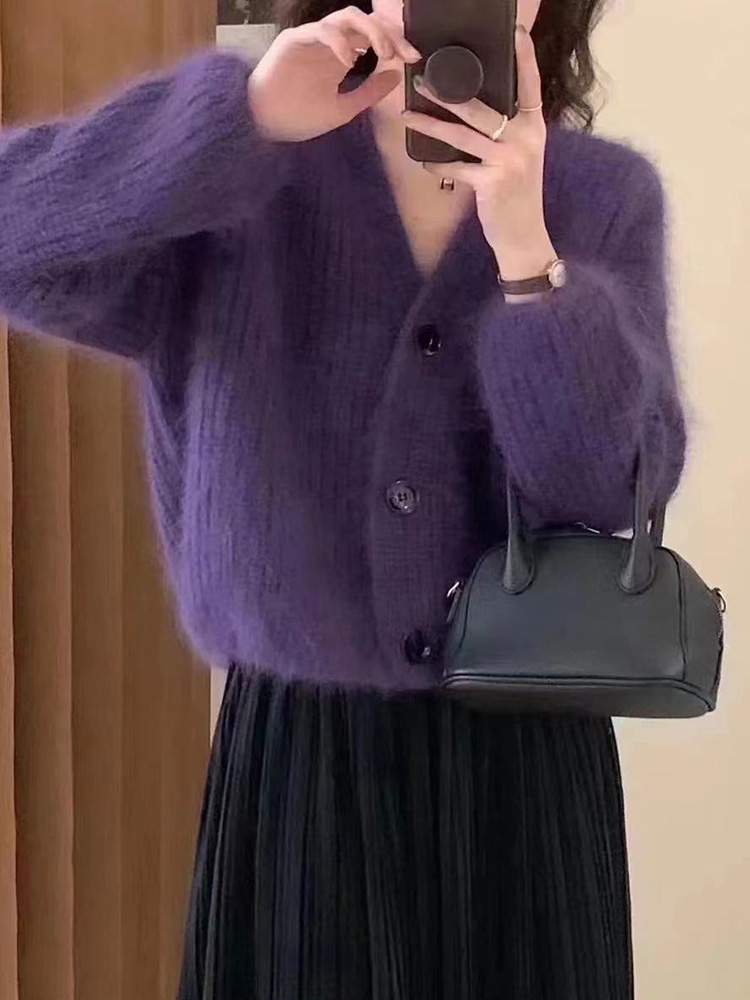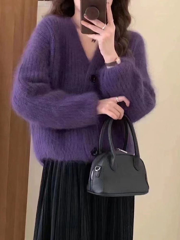 | nameOriginal | Lixu purple knitted sweater women's thickened 2023 Winter New V-neck cardigan mohair soft glutinous top |