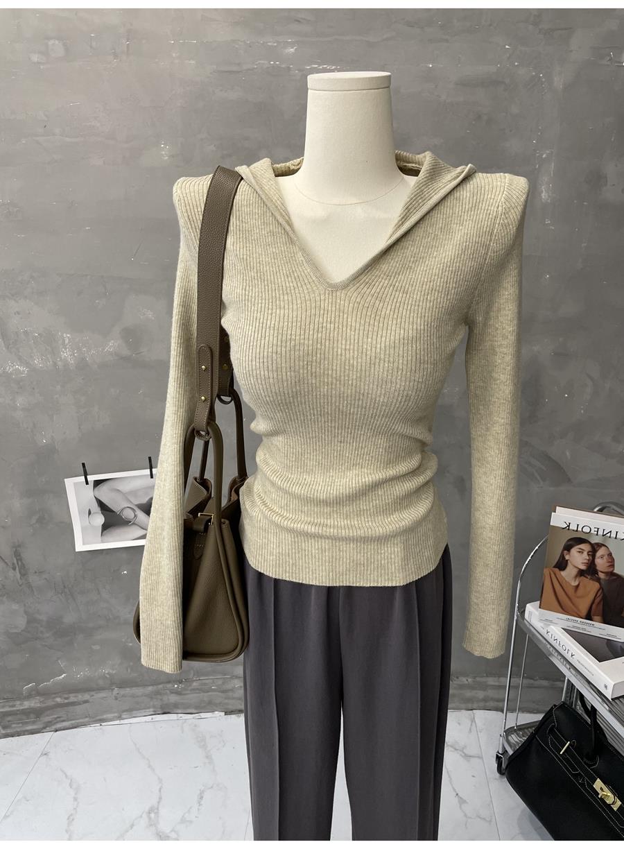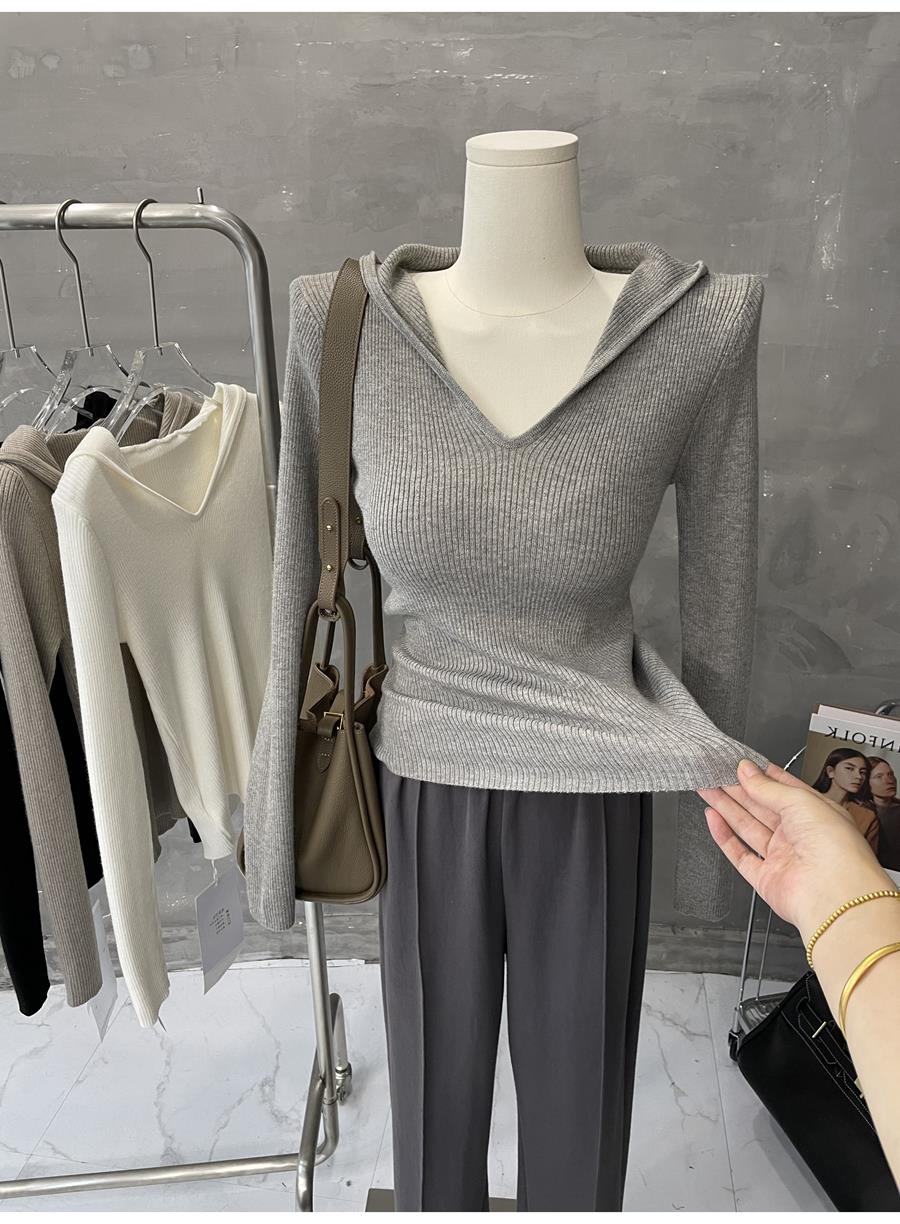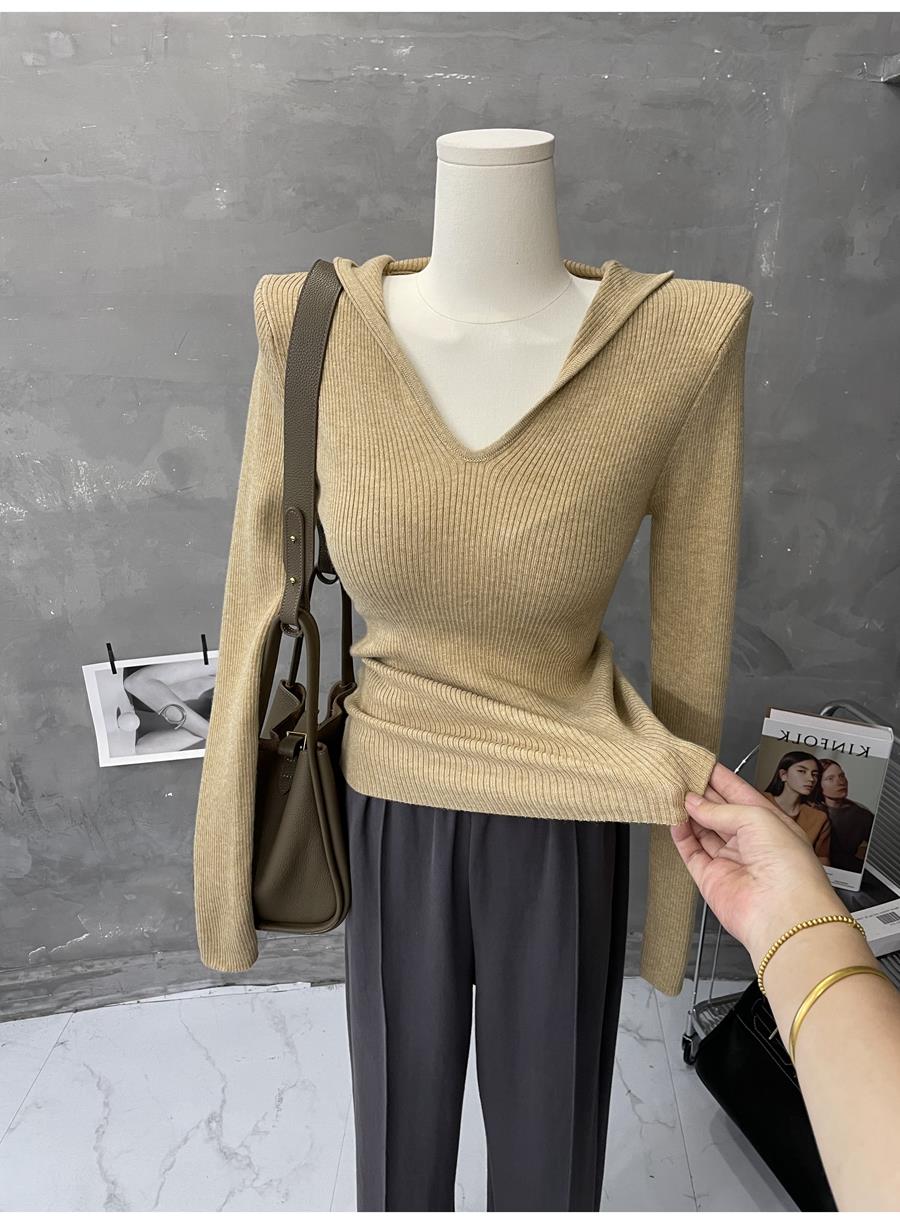 Lixu texture chao good ~ slim hooded coat sweater women’s solid color long sleeve pullover sweater 2023 autumn and winter