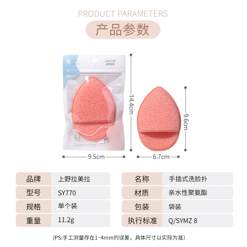 | nameOriginal | LMLTOP water drop hand plug-in face washing puff makeup remover cleaning mud film soaking water large honeycomb facial cleansing puff SY770 |