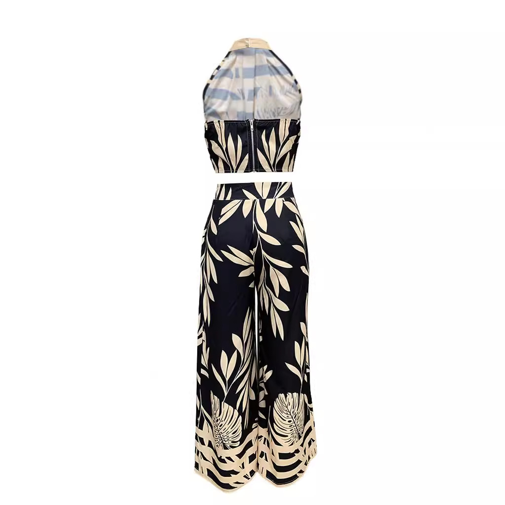 | nameOriginal | LN1146 in stock 2024 Spring and Summer New Cross-border Women's Fashion Elegant Printed Neck Backless Straight Pants Two-piece Set |