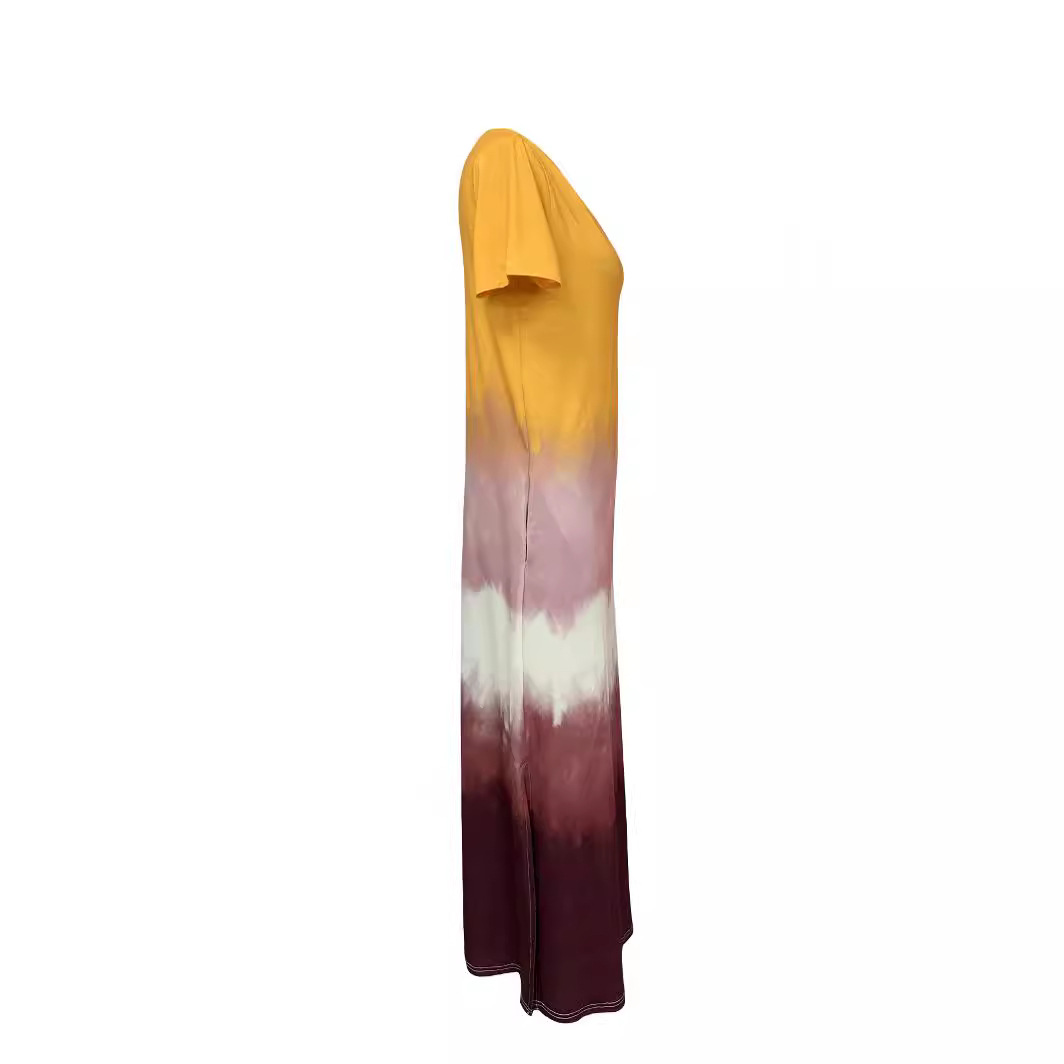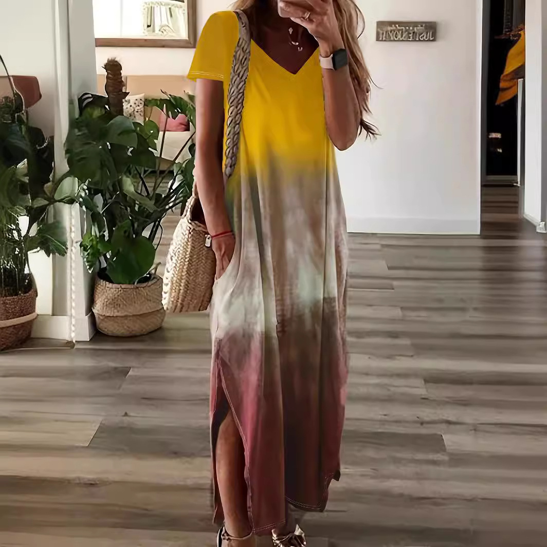 LN1157 in stock 2024 Spring and Summer New Cross-border Women’s Fashion Elegant Printed V-neck Short Sleeve Mid-length Clothes