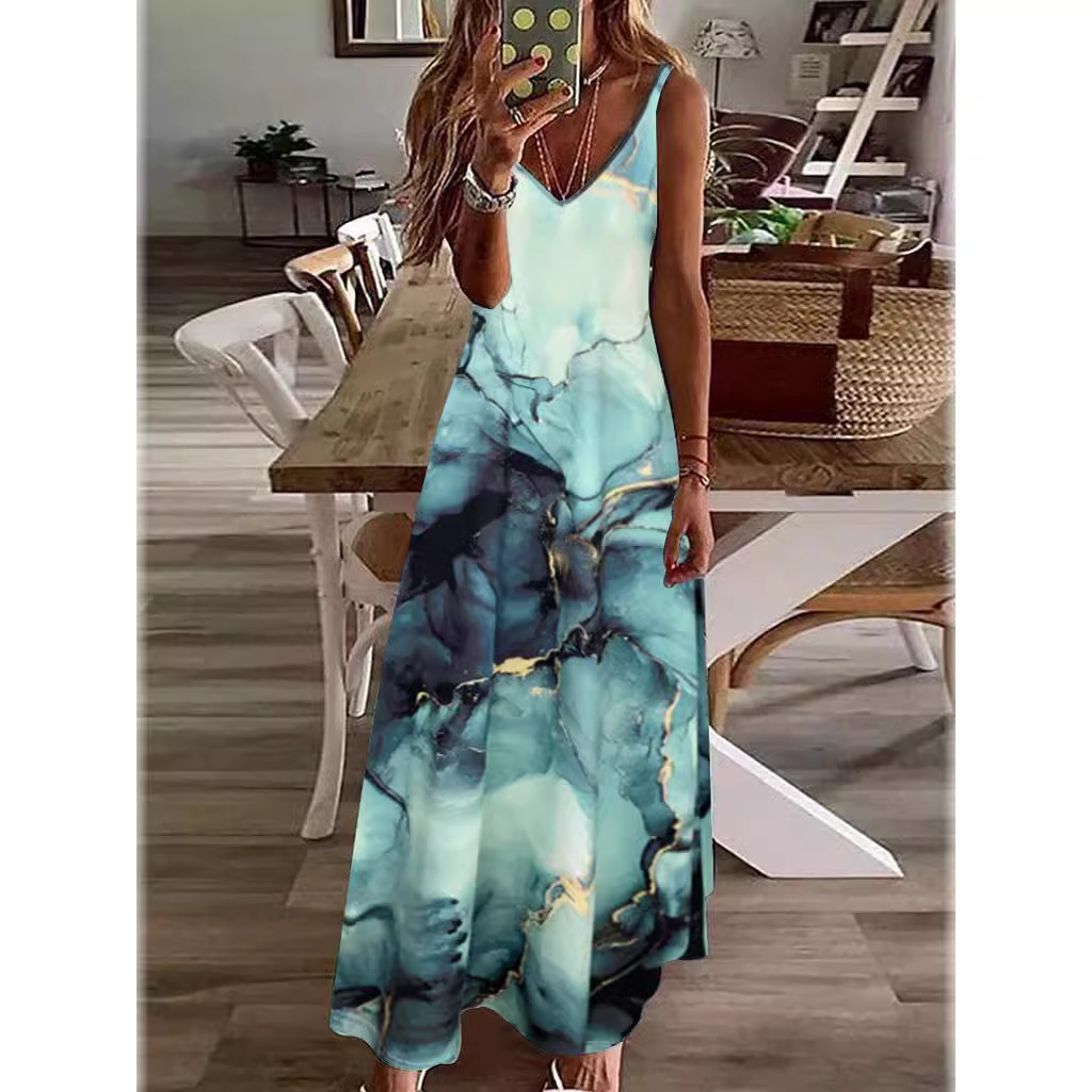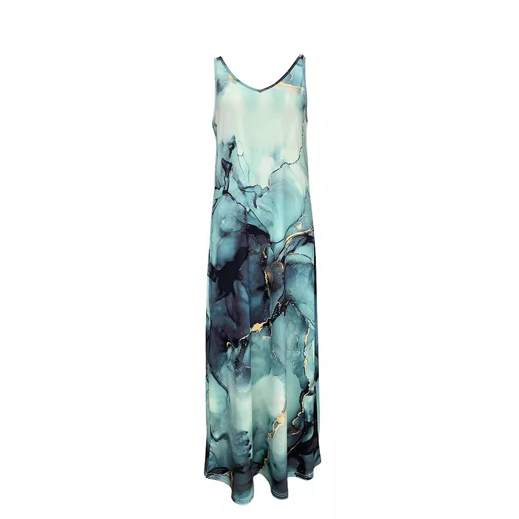 | nameOriginal | LN1158 in stock 2024 Summer New Cross-border Women's Fashion Casual Printed V-neck Sleeveless Midi dress |