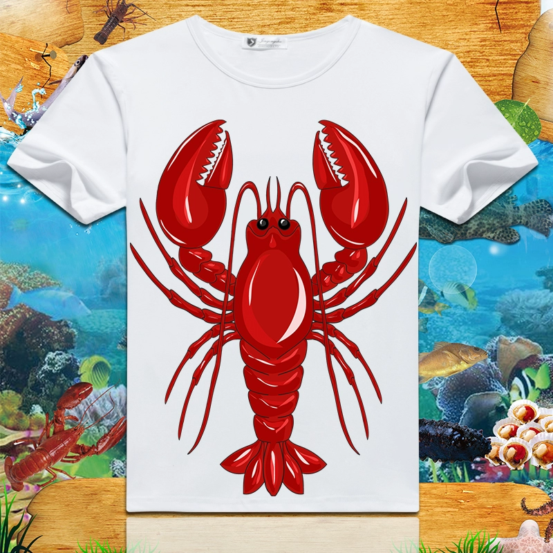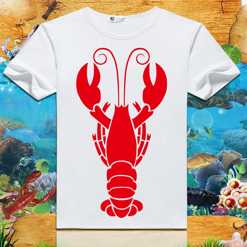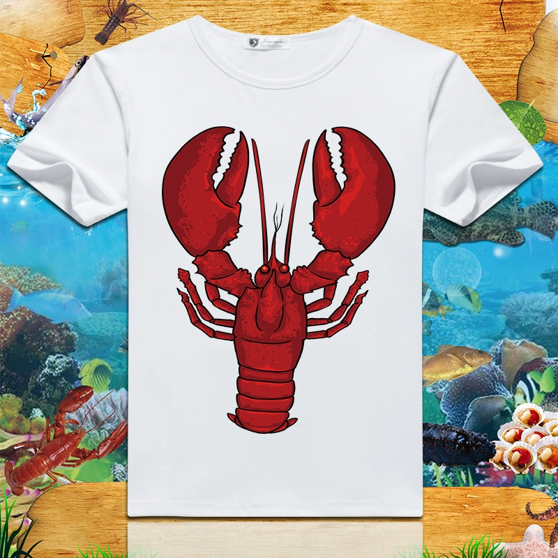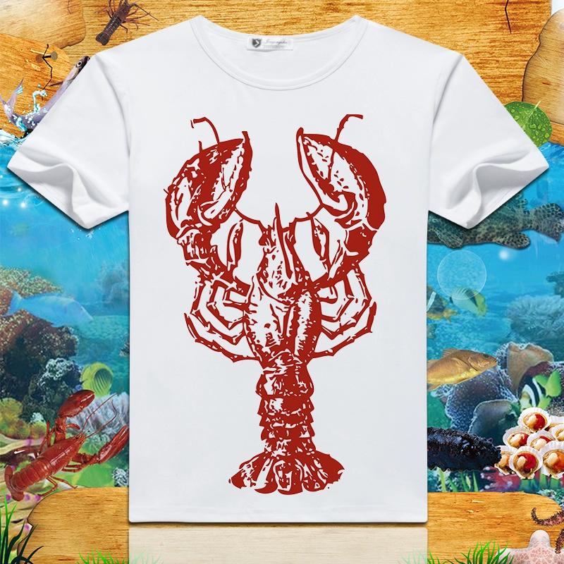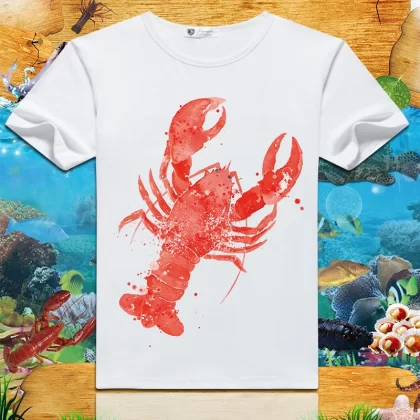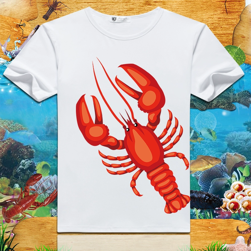 Lobster print 2024 summer new short-sleeved men’s and women’s round neck T-shirts loose creative half-sleeved trendy couple tops