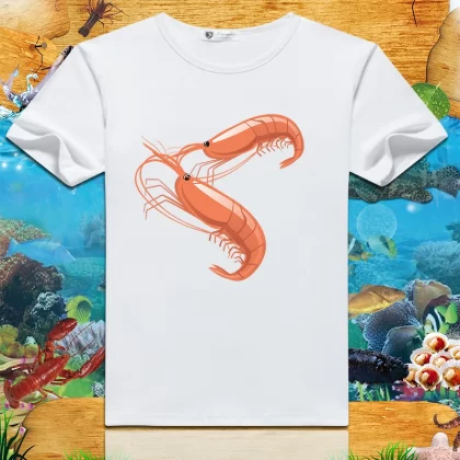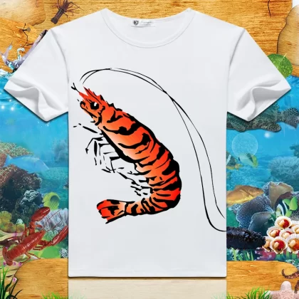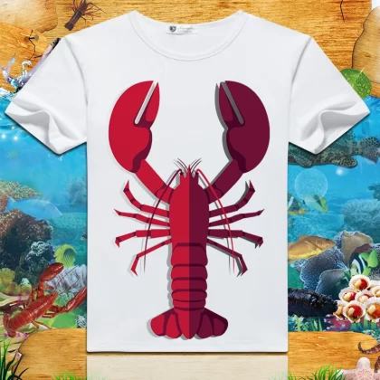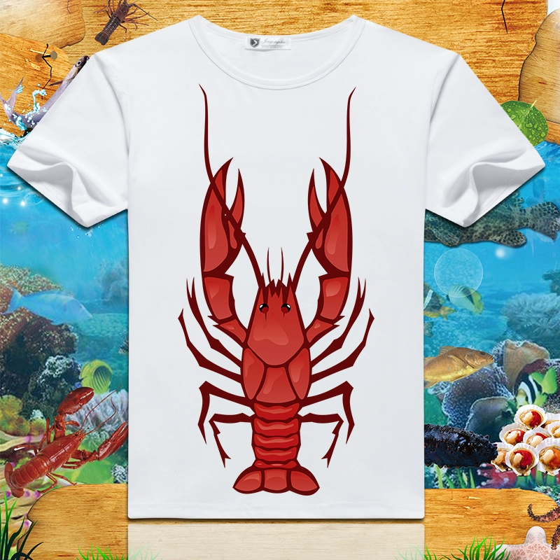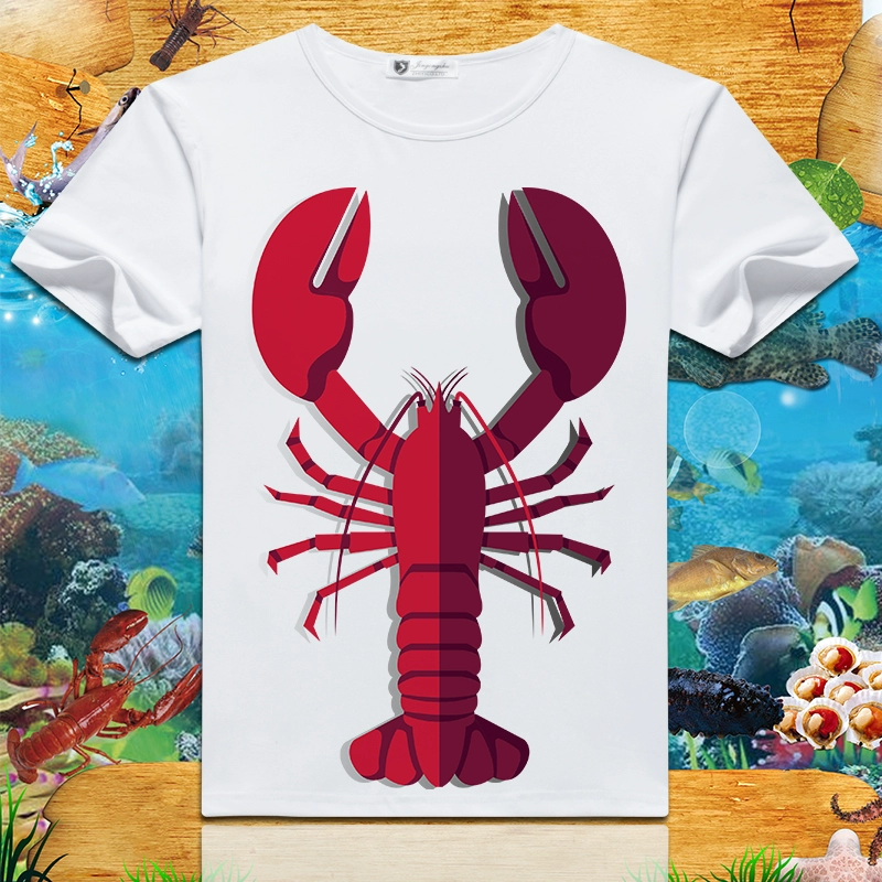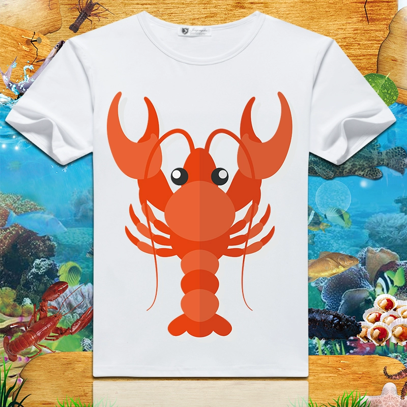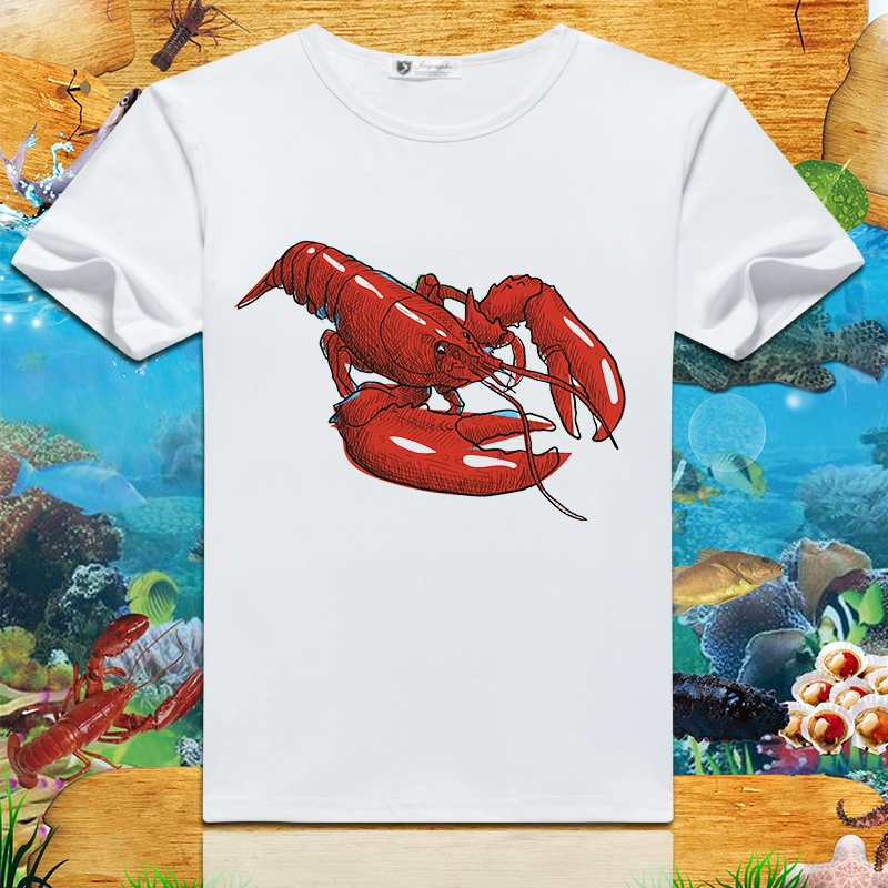 Lobster print 2024 summer new short-sleeved men’s and women’s round neck T-shirts loose creative half-sleeved trendy couple tops