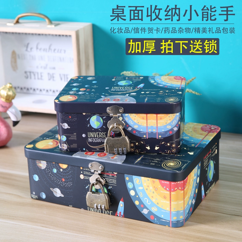 Lockable storage box iron box storage box storage box small box desktop lockable girl's heart letter password collection box
