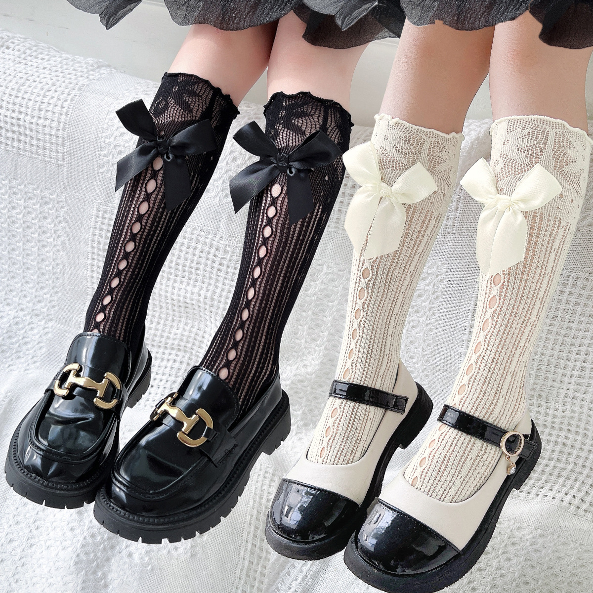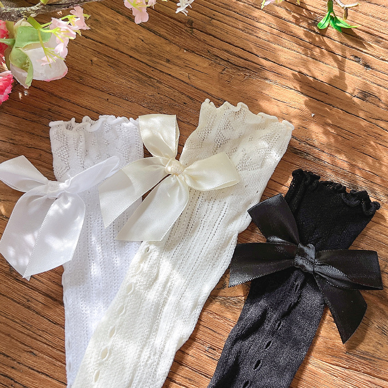 Lolita socks girls half tube socks spring and summer princess bow mesh lace calf socks summer thin socks