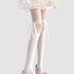 Lolita strappy pantyhose women’s thin cute ballet style bow lace white spliced ​​stockings anti-snagging