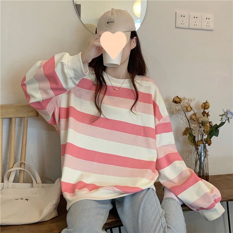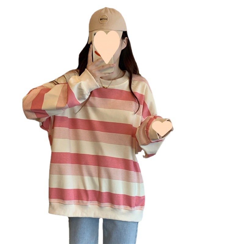| nameOriginal | Long and Short Optional Striped Contrast Color Loose Long Sleeve T-Shirt Women's Autumn and Winter Thin Round Neck Sweater Fashionable Top for Female Students |