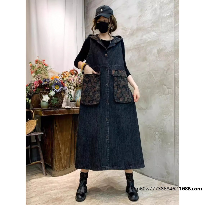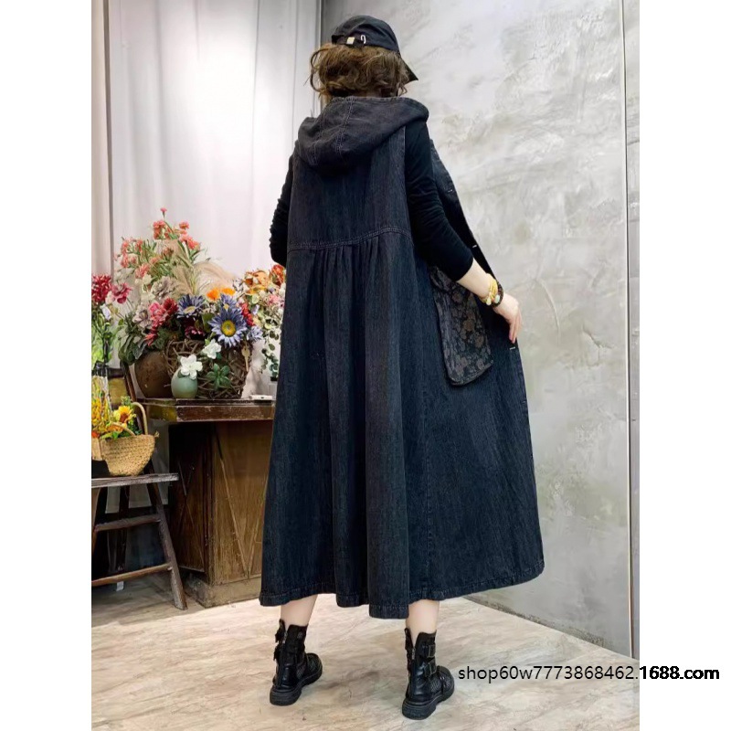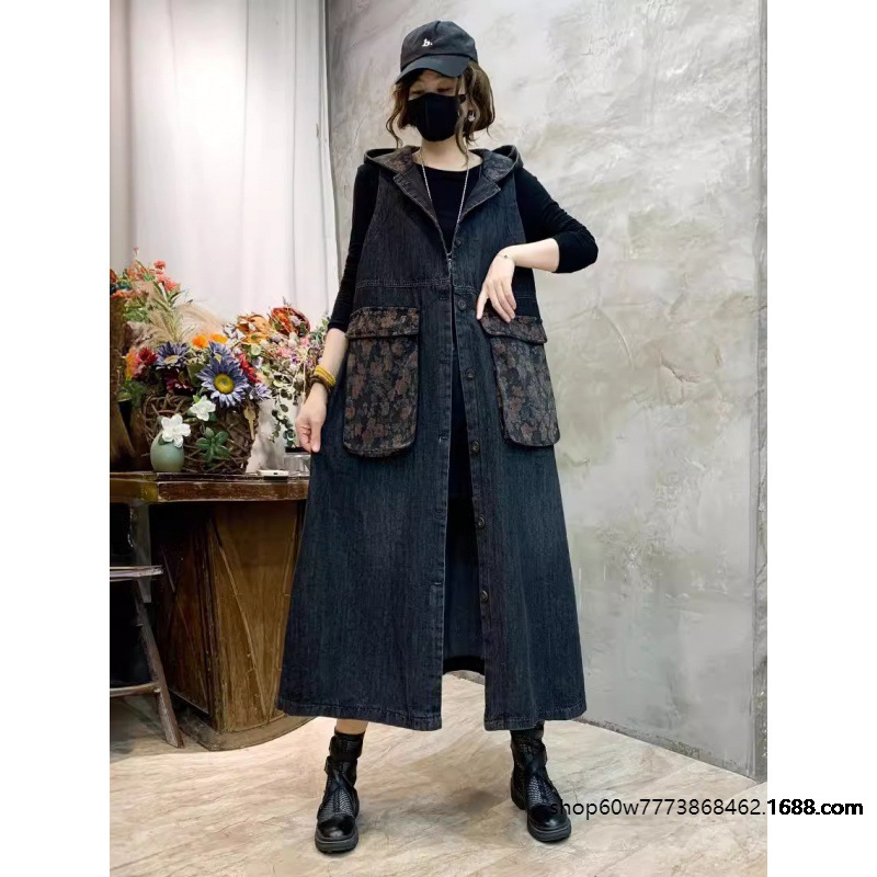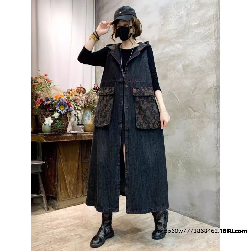 | nameOriginal | Long Denim Jacket Vest 2024 Autumn New Stitching Small Flower Printed Pic Loose Hooded Cardigan for Women |