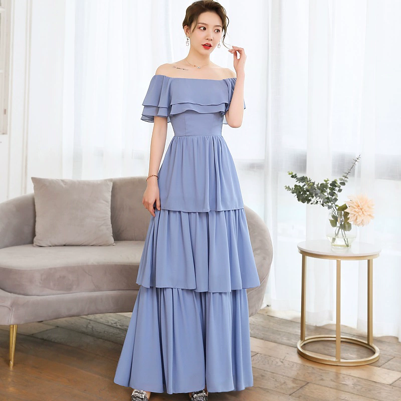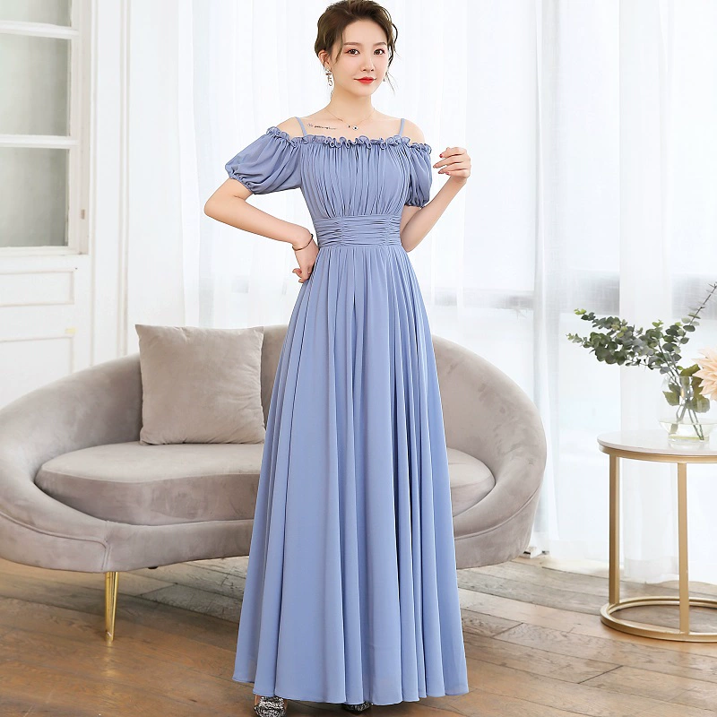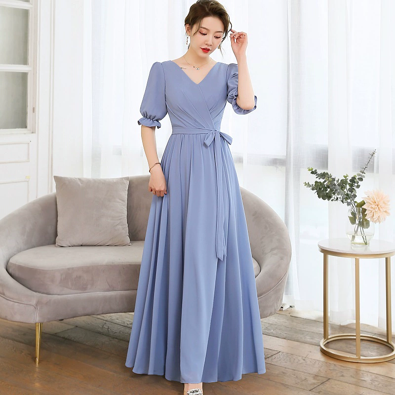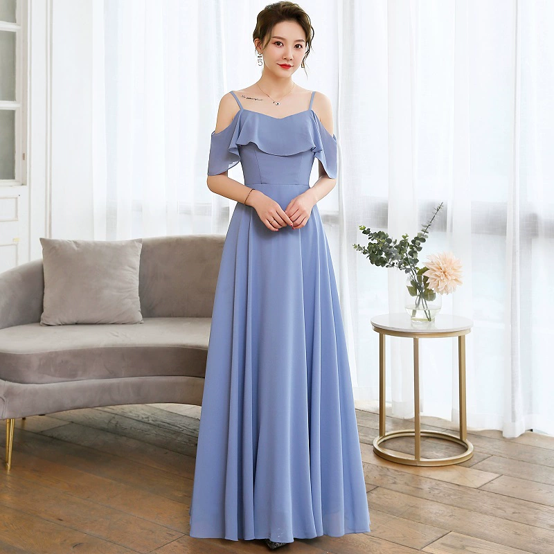 | nameOriginal | Long exterior sisters dress gray blue bridesmaid dress |