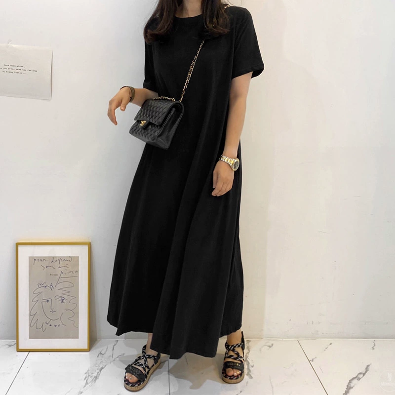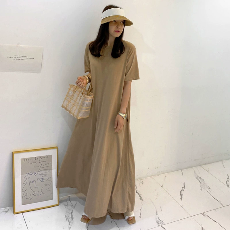 | nameOriginal | Long Korean style large size over the knee summer casual T-shirt dress |