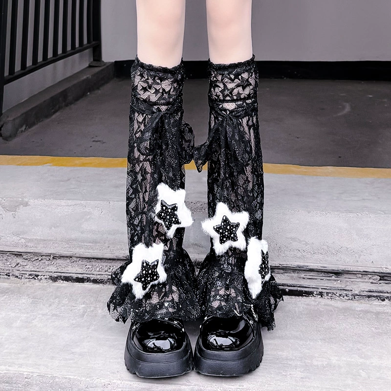 | nameOriginal | Long lace leg sets for female subculture y2k thin millennium hottie star socks set jk cute calf pile socks |