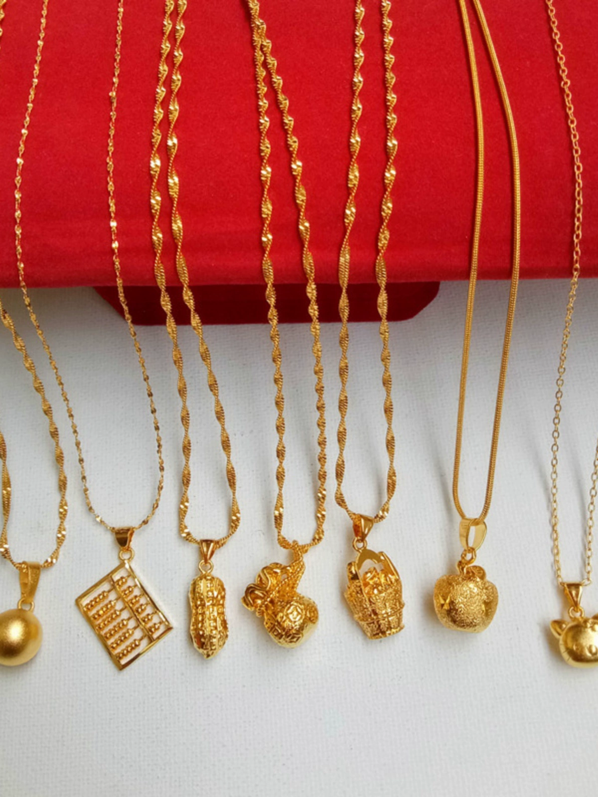 | nameOriginal | Long-lasting pendant, bucket of gold-plated necklace, gift to girlfriend, apple money bag, abacus, peanut sand gold jewelry |
