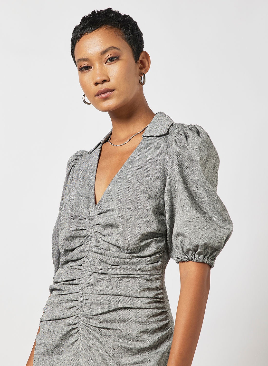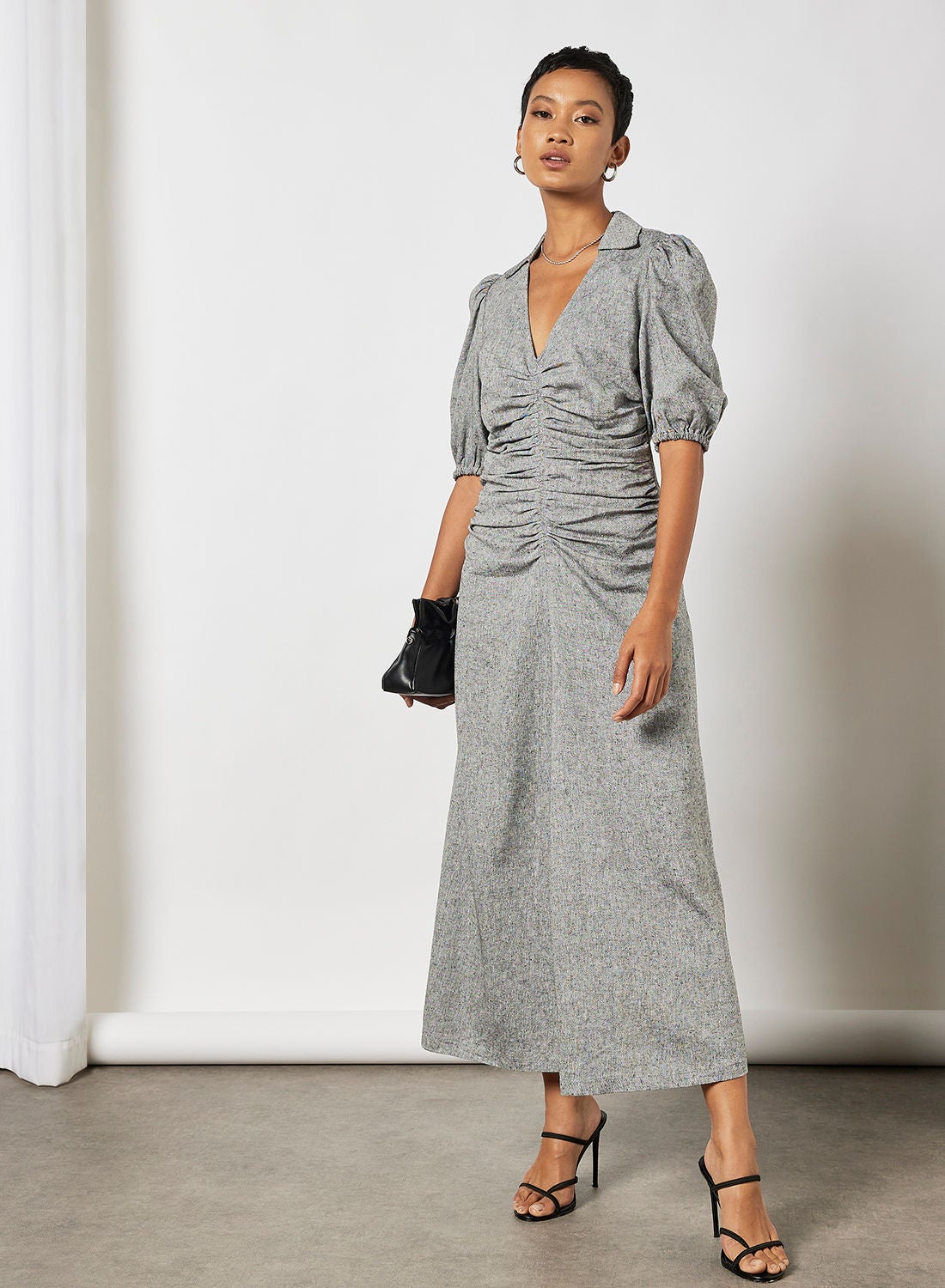 Ruched Linen Maxi Dress