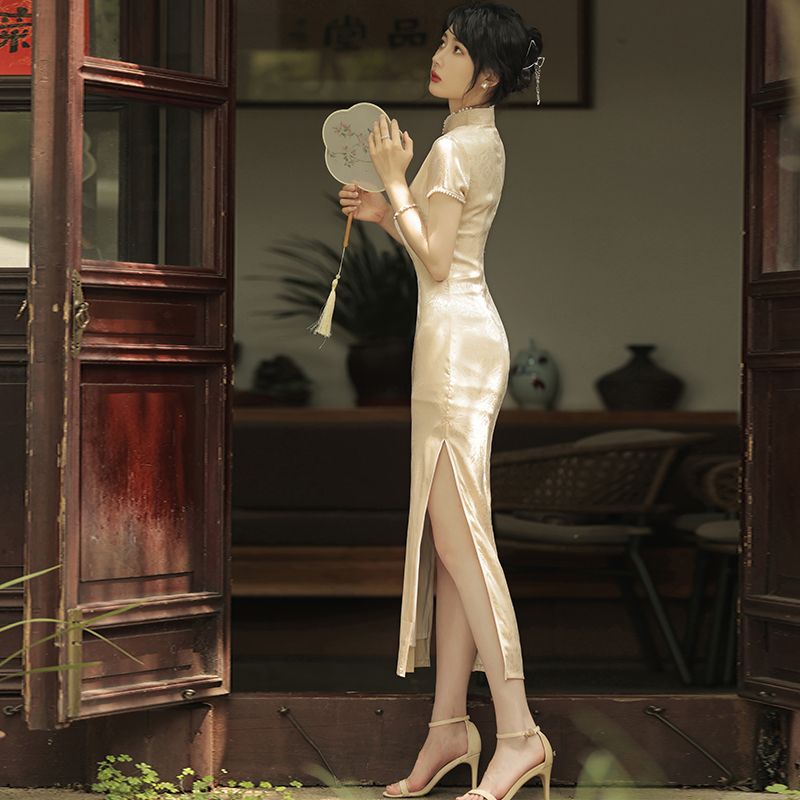 | nameOriginal | Long Modified Cheongsam Girl Champagne 2024 New Summer French Retro Elegant Daily Young Style |