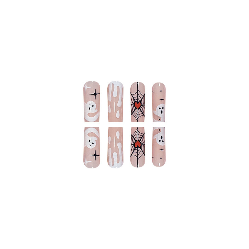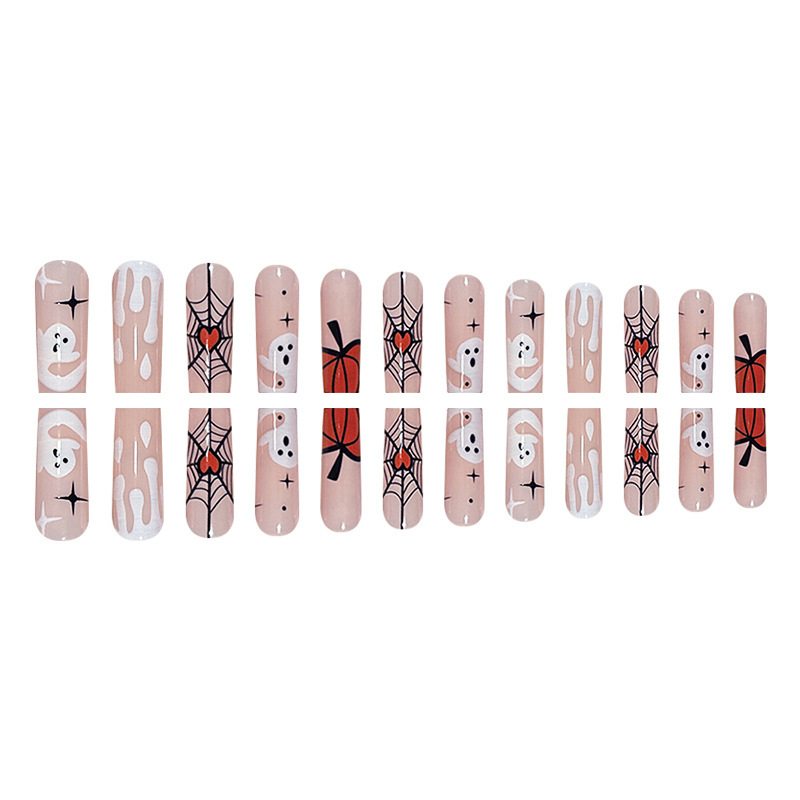 | nameOriginal | Long pink French ghost pumpkin Halloween popular Spider manicure wear nail spider web love fake nails |