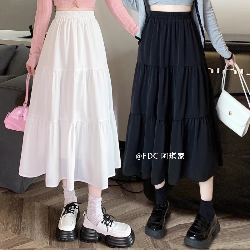 | nameOriginal | Long Skirt 2024 Spring and Summer New Pleated Skirt Women's Elegant High Waist Mid-length A- line Skirt Hip Covering Slim Fairy |