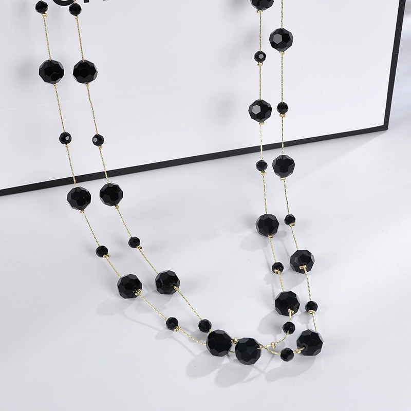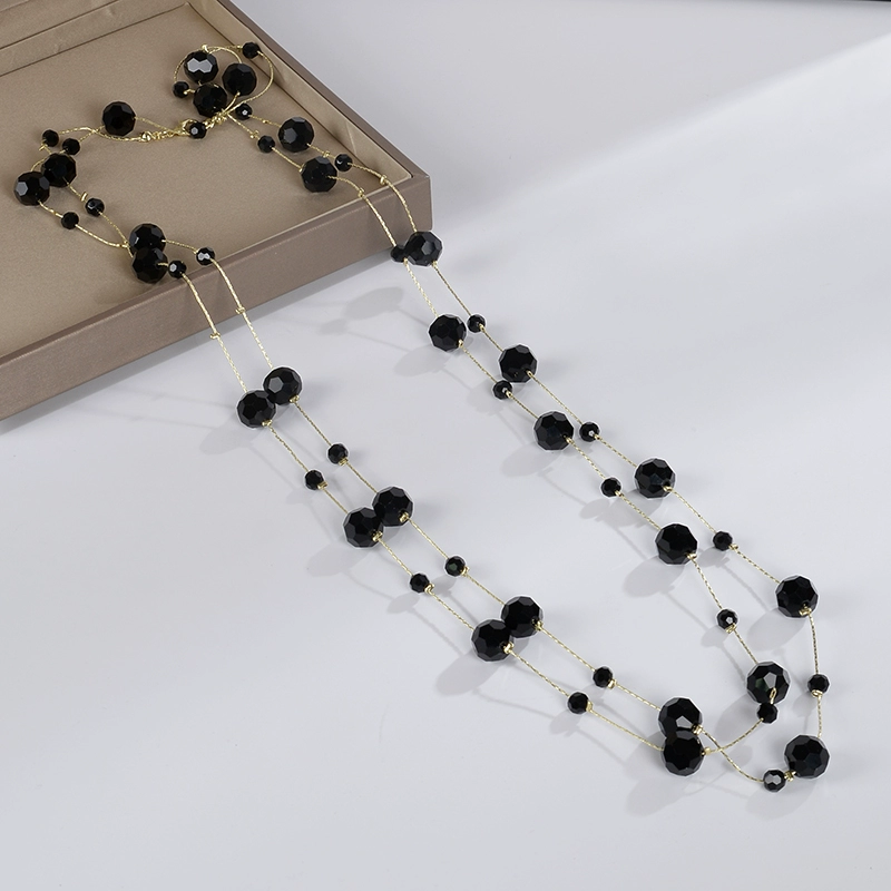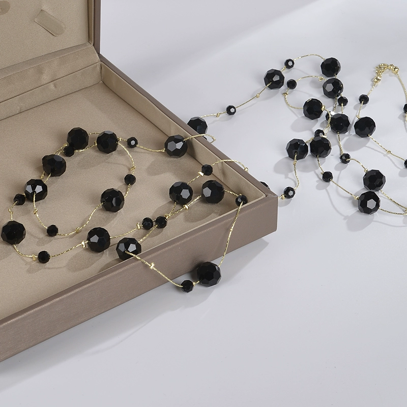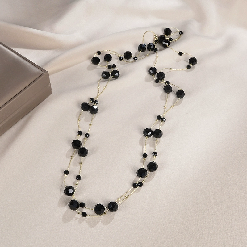 Long skirt, sweater chain, versatile, fashionable, elegant, shiny black crystal women's necklace, accessories pendant