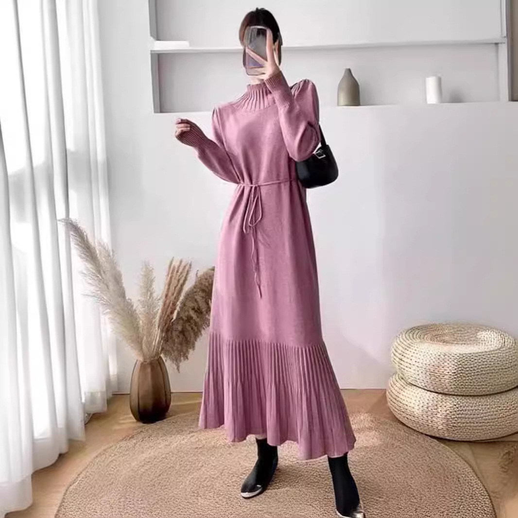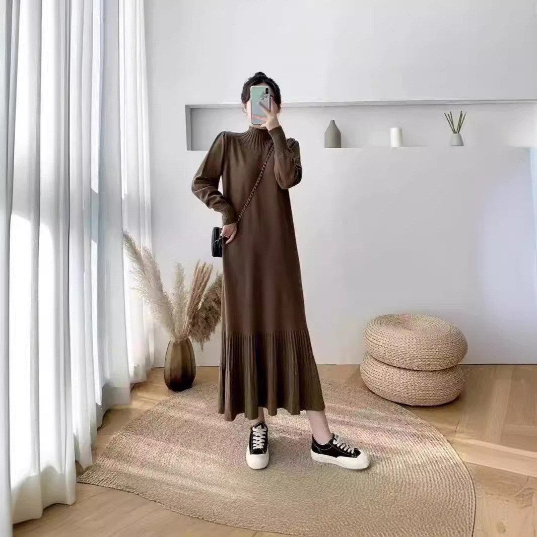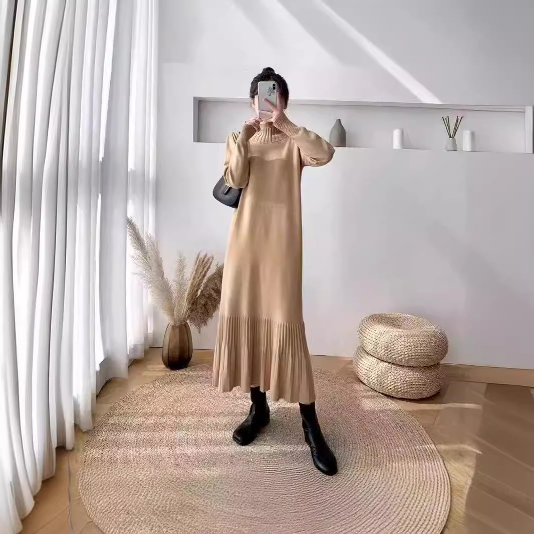 | nameOriginal | Long Sleeve Bottoming Knitted Sweater Dress Women's Autumn and Winter New Over-the-Knee Long Loose plus size Inner Long Dress Dress |