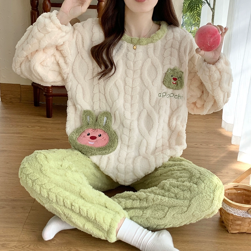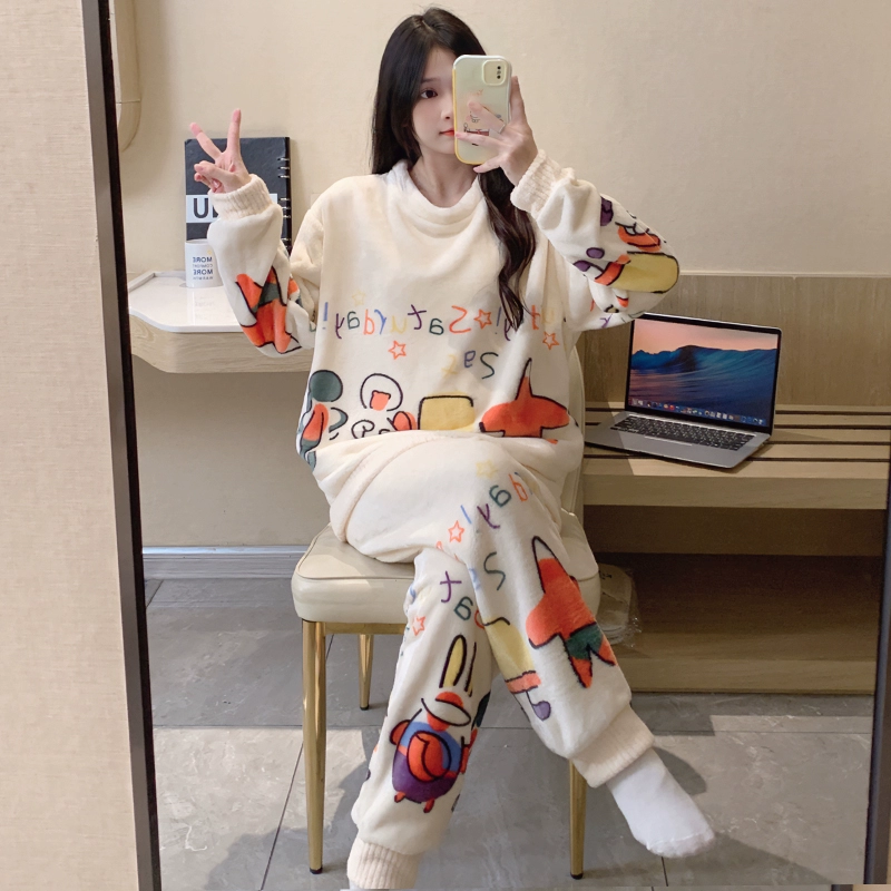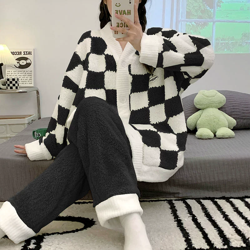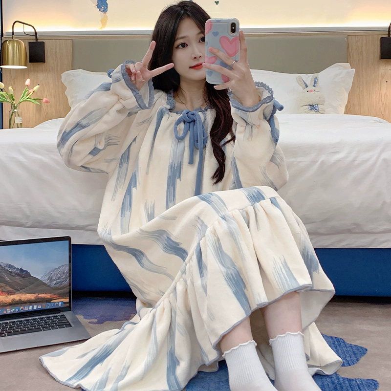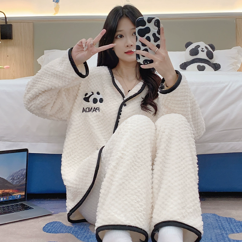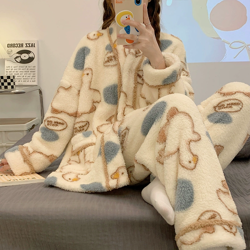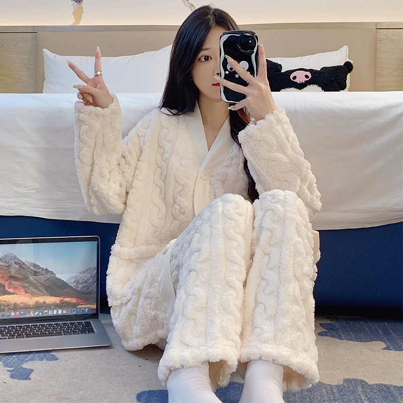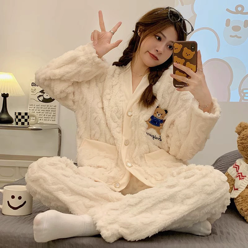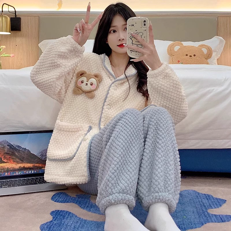 | nameOriginal | Long sleeve cardigan winter women's thick flannel pajamas |