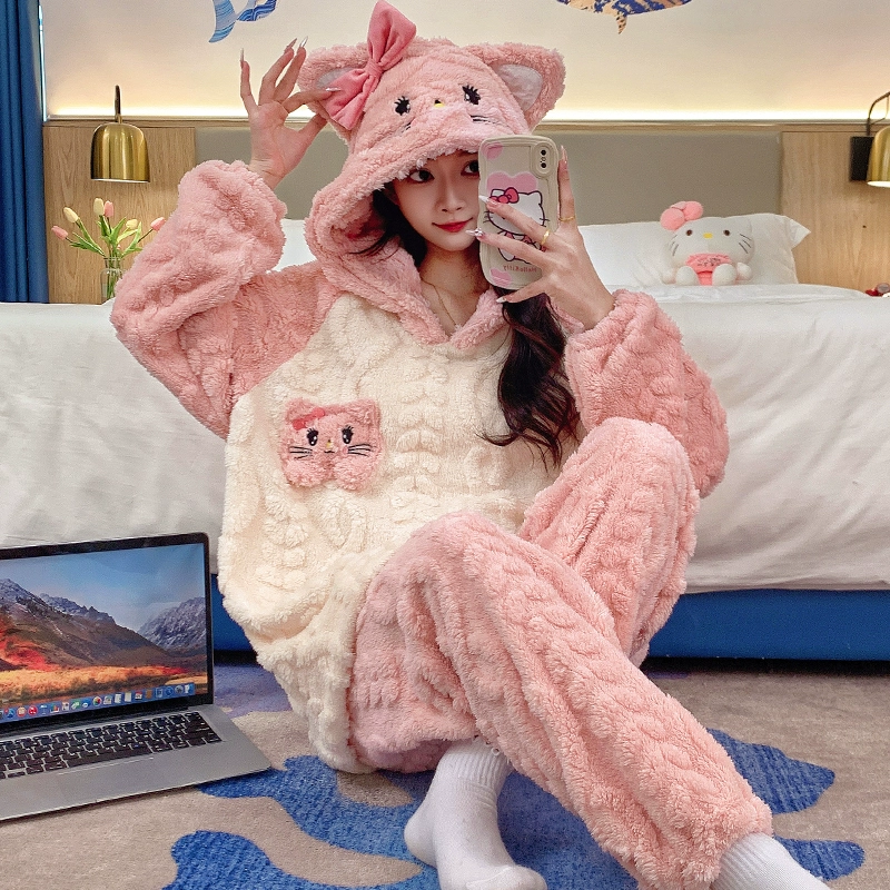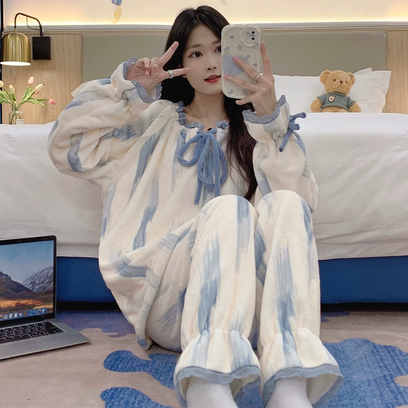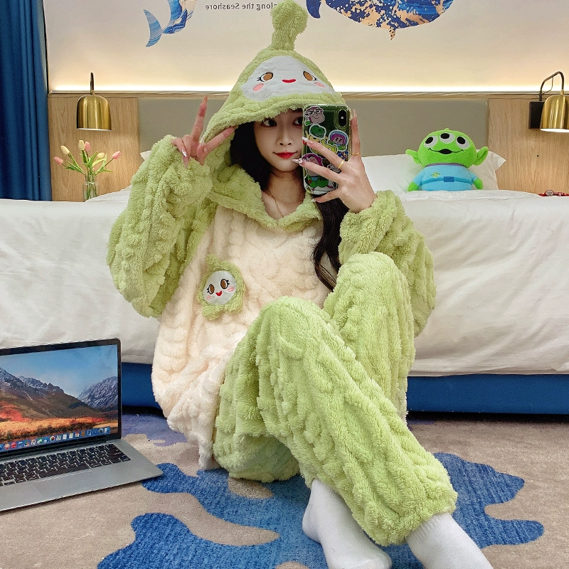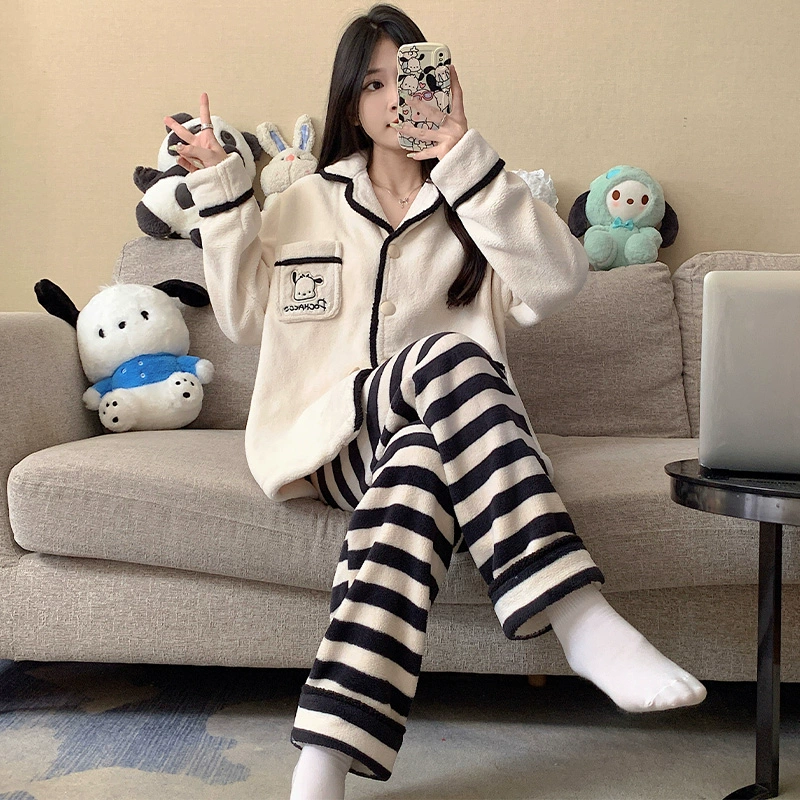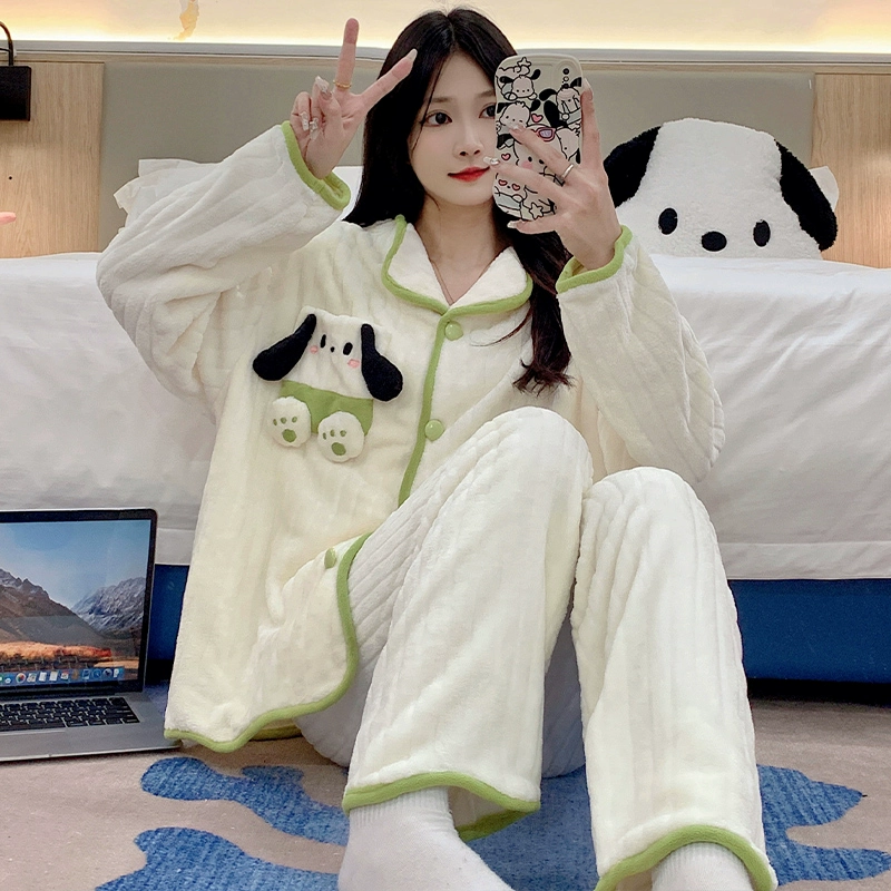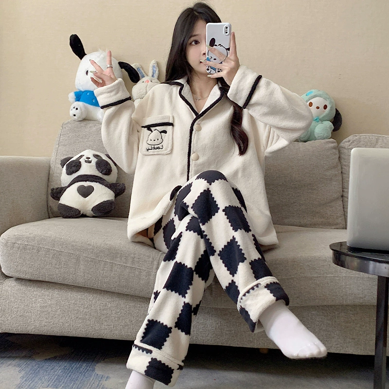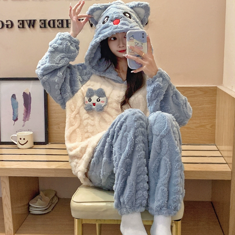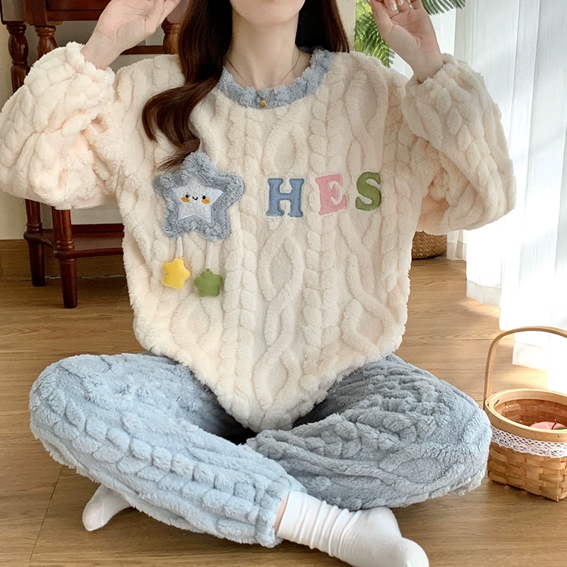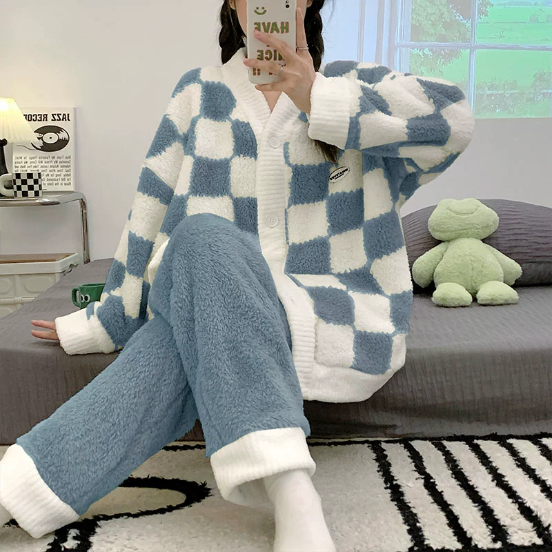 | nameOriginal | Long sleeve cardigan winter women's thick flannel pajamas |