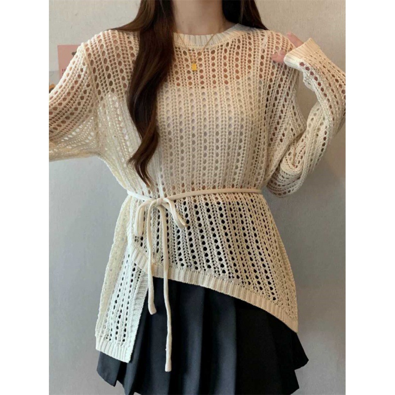 | nameOriginal | Long sleeve hollow knitwear summer 2024 new women's thin plus size fashion lazy style round neck blouse suit |