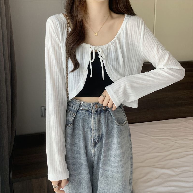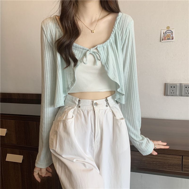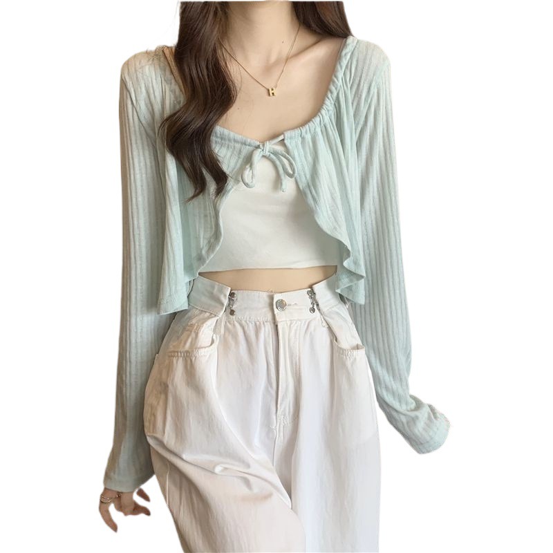 | nameOriginal | Long Sleeve Knitted Sunscreen Cardigan Women's 2024 Summer Thin Sexy Waistle Sling Outer Waistcoat Short Shawl Coat Trendy |